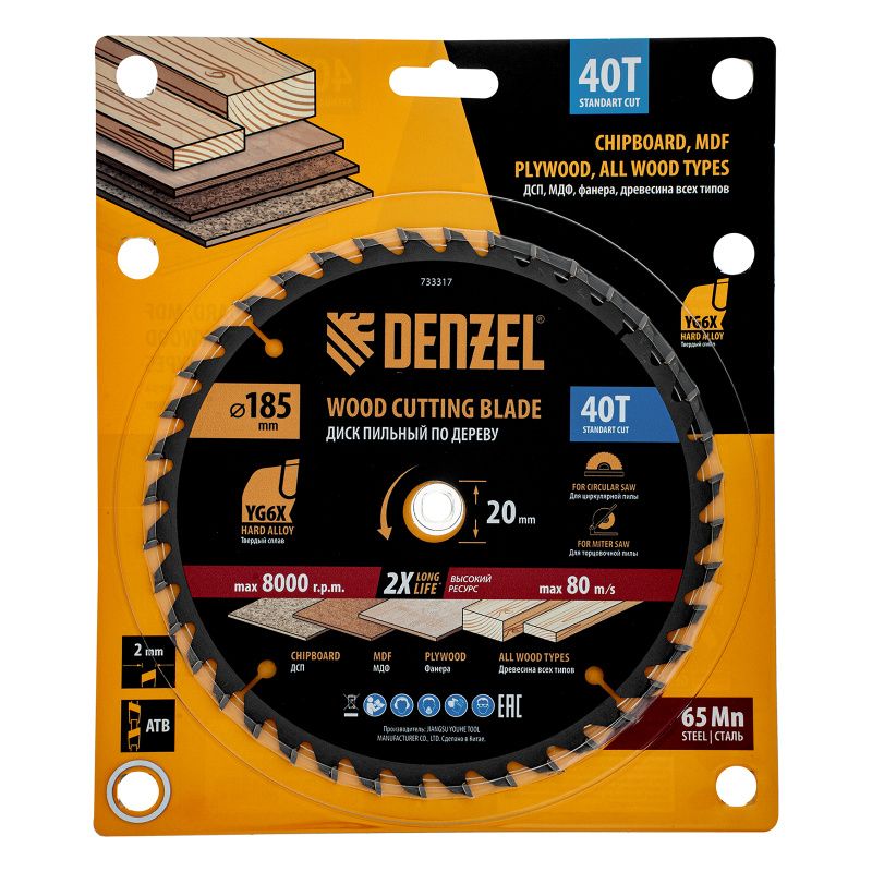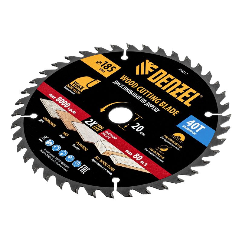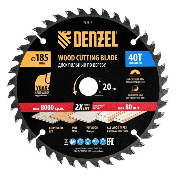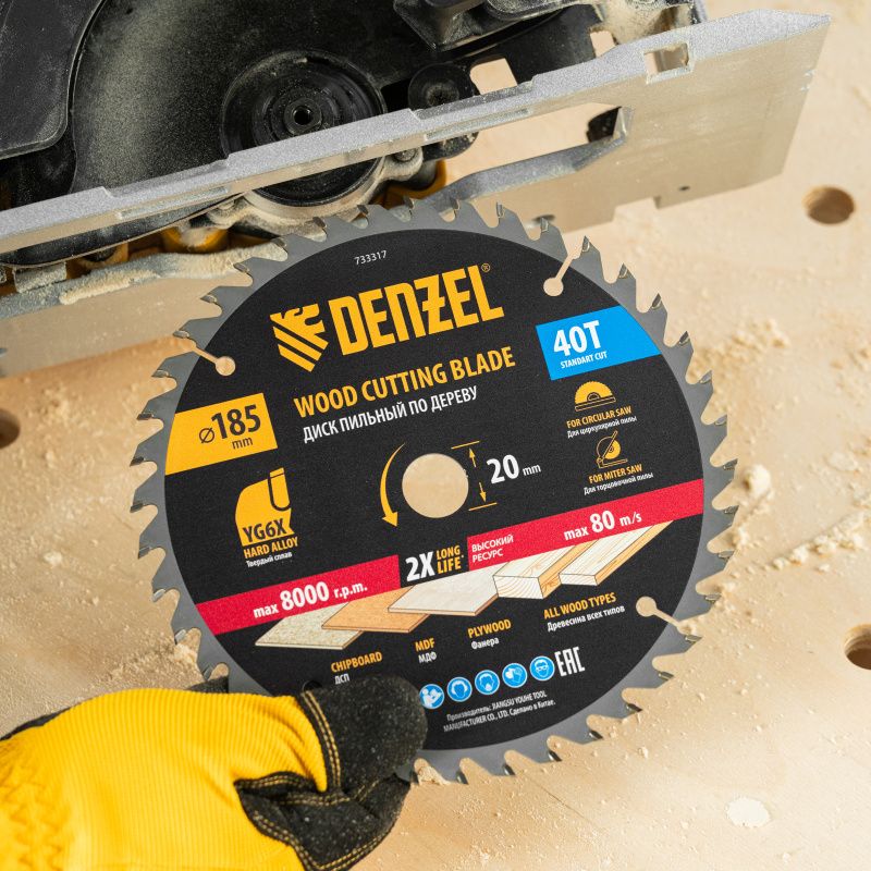 Пильный диск по дереву ф185 х 20 мм, 40 зубьев Denzel, 733317
