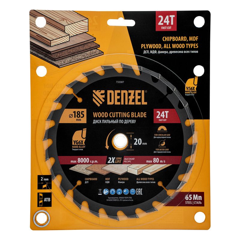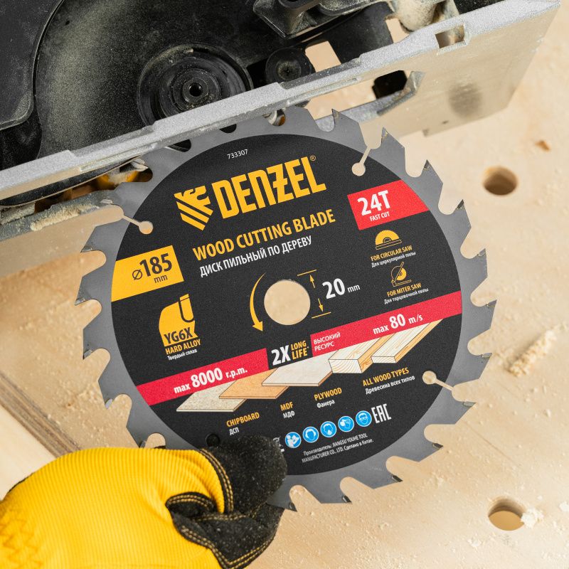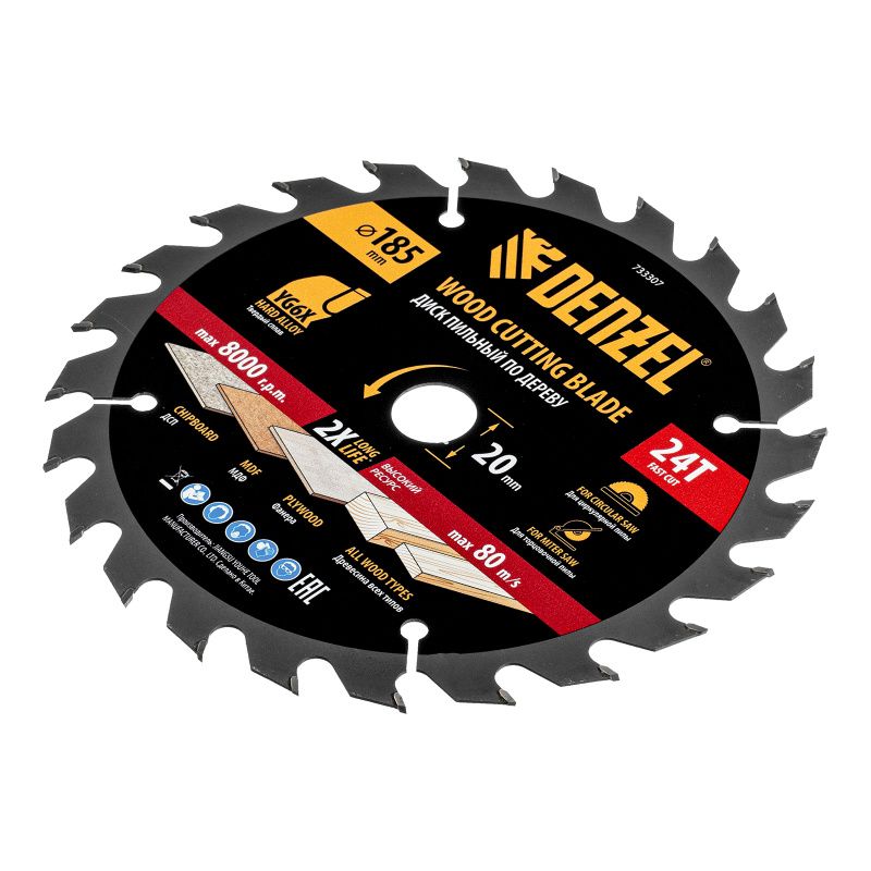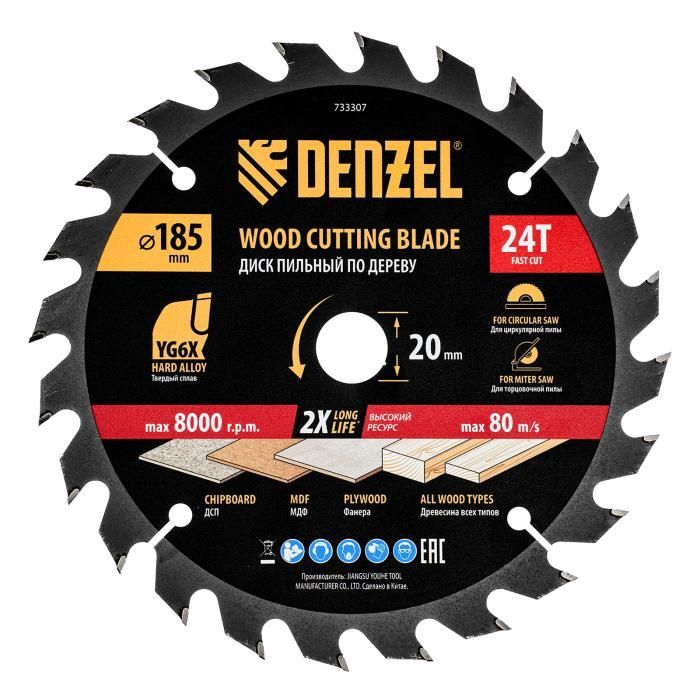 Пильный диск по дереву ф185х 20 мм, 24 зубьев Denzel, 733307