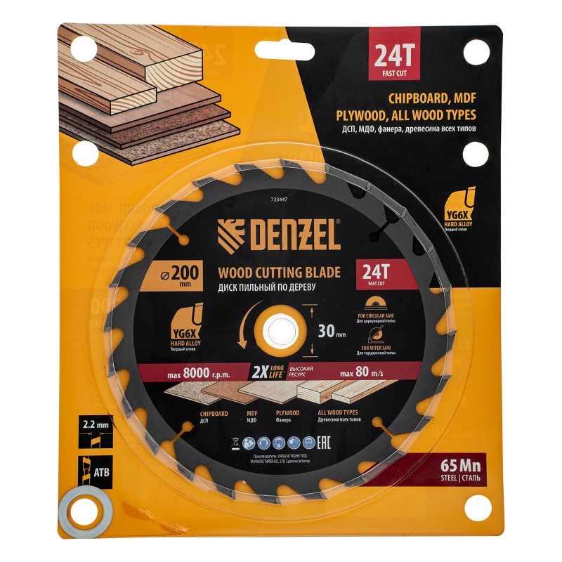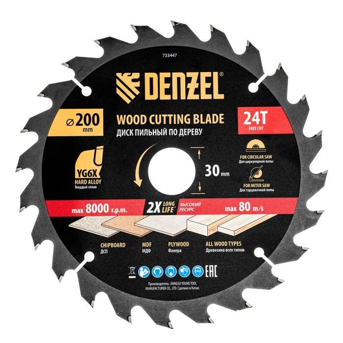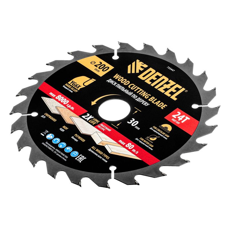 Пильный диск по дереву ф200 х 30 мм, 24 зубьев Denzel, 733447