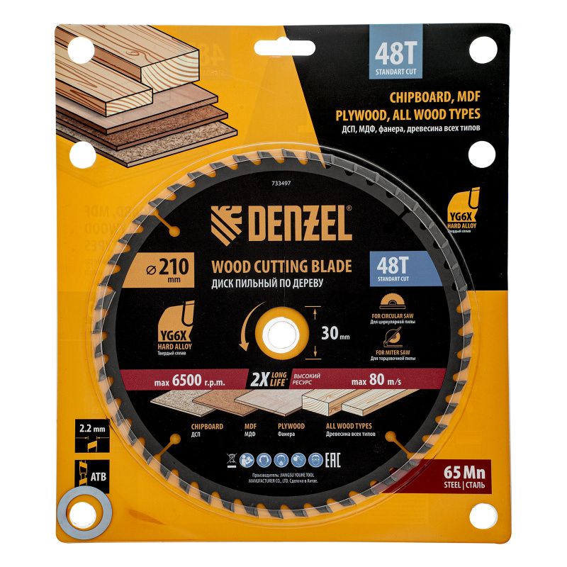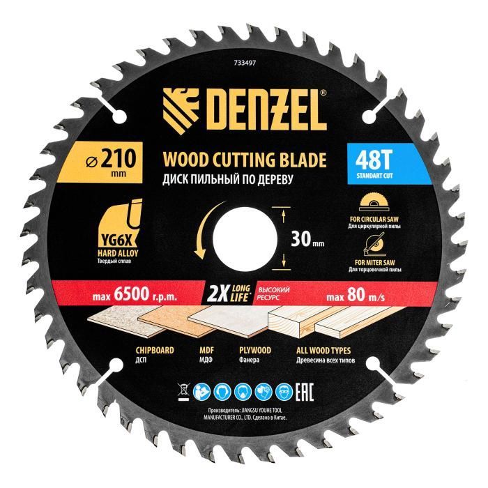 Пильный диск по дереву ф210 х 30 мм, 48 зубьев Denzel, 733497