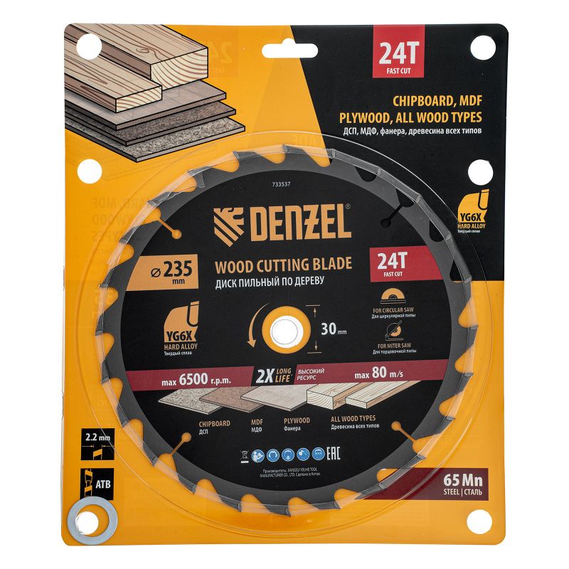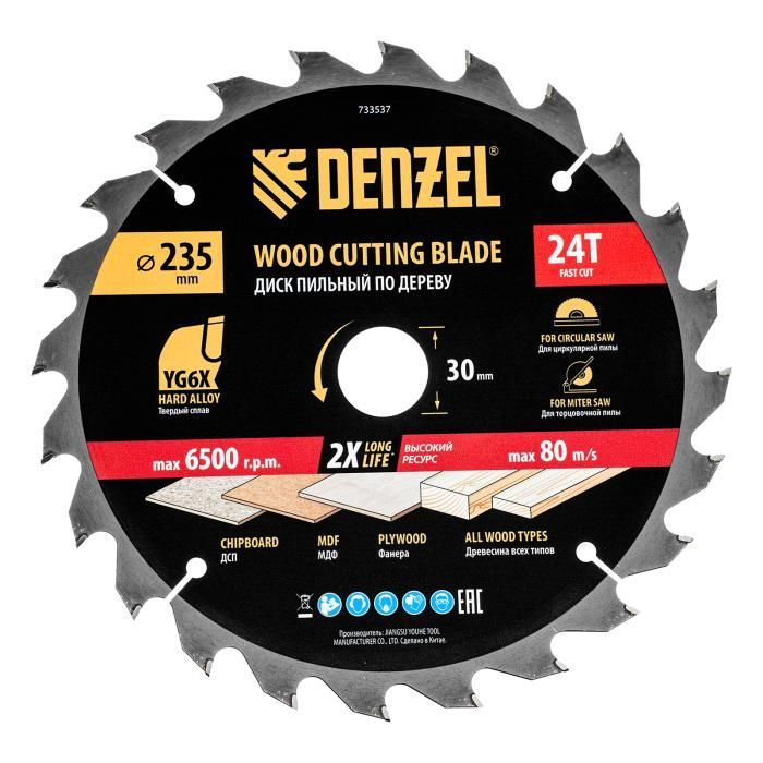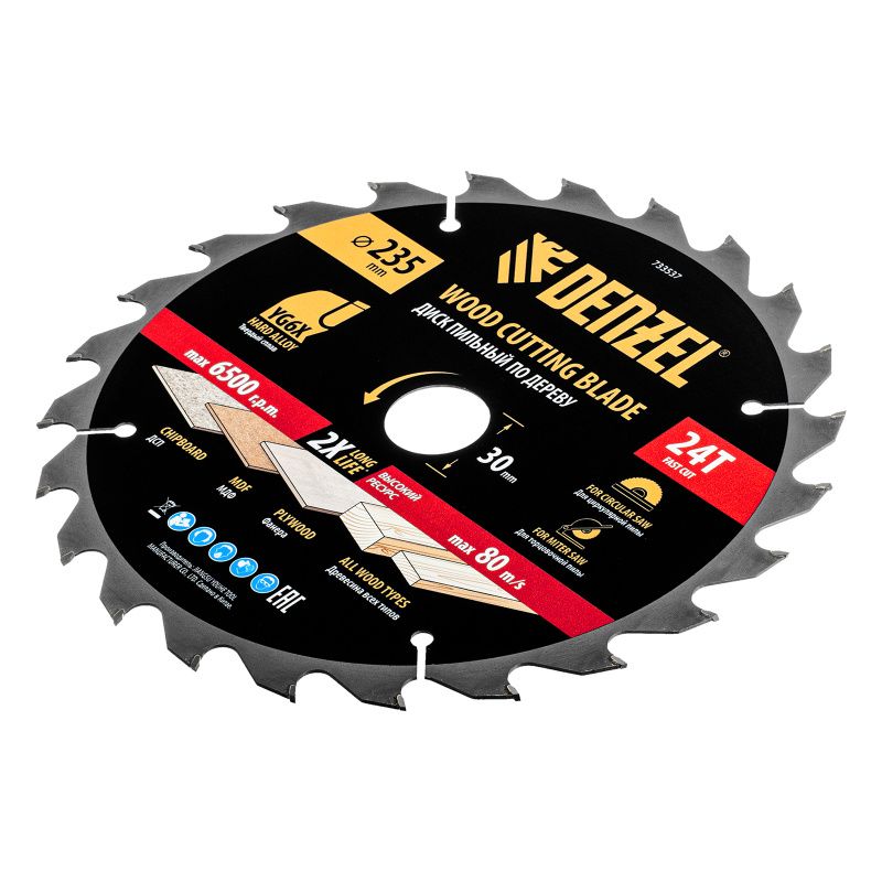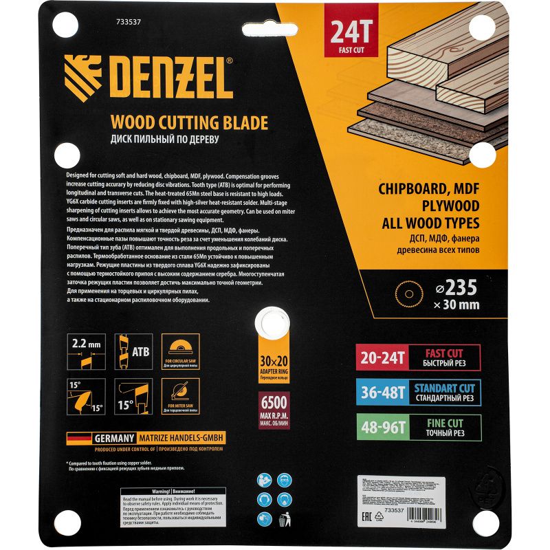Пильный диск по дереву ф235 х 30 мм, 24 зубьев Denzel, 733537