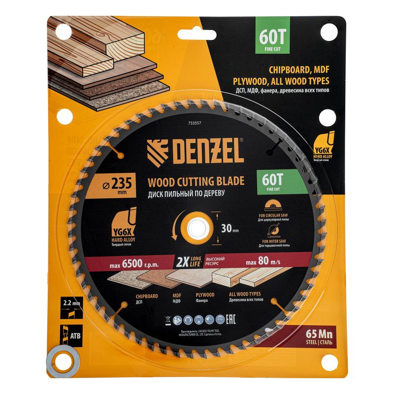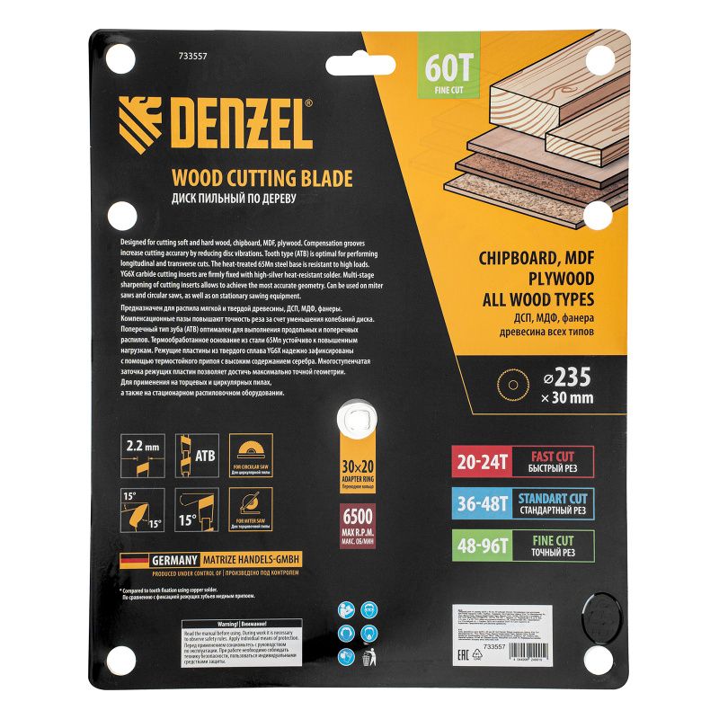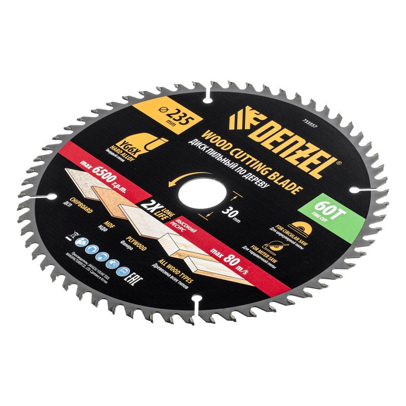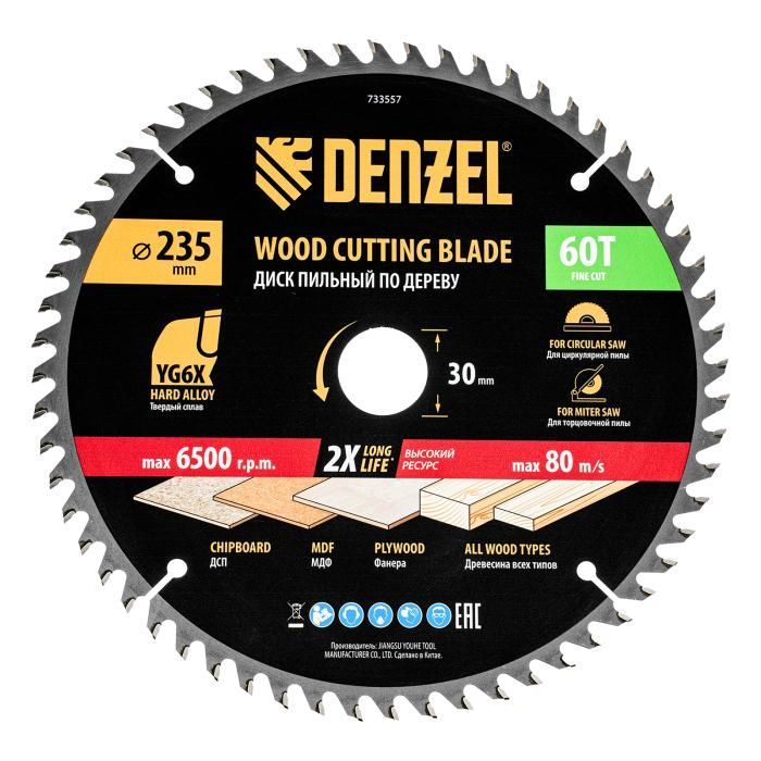 Пильный диск по дереву ф235 х 30 мм, 60 зубьев Denzel, 733557
