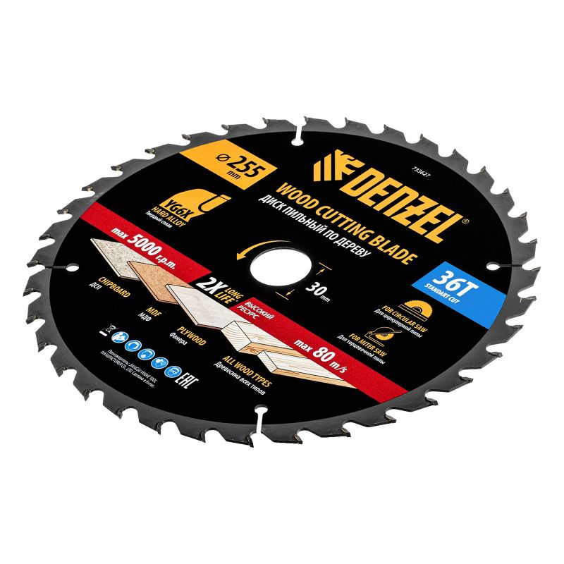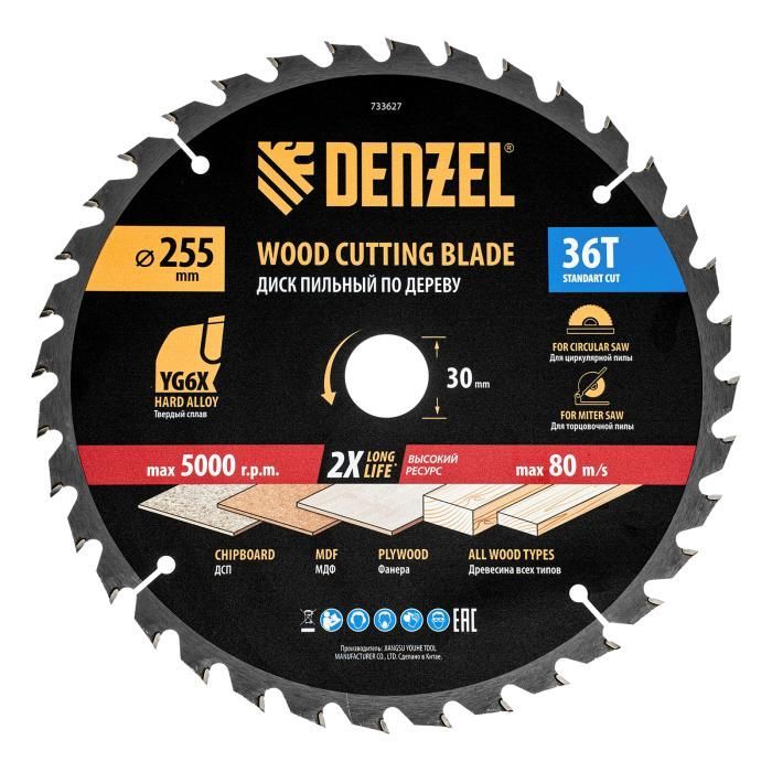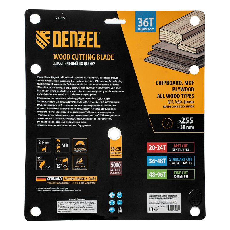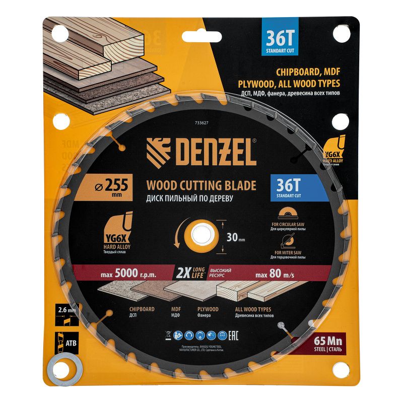 Пильный диск по дереву ф255 х 30мм, 36 зубьев Denzel, 733627