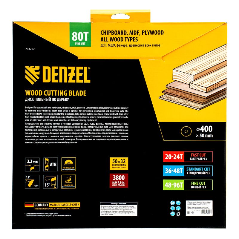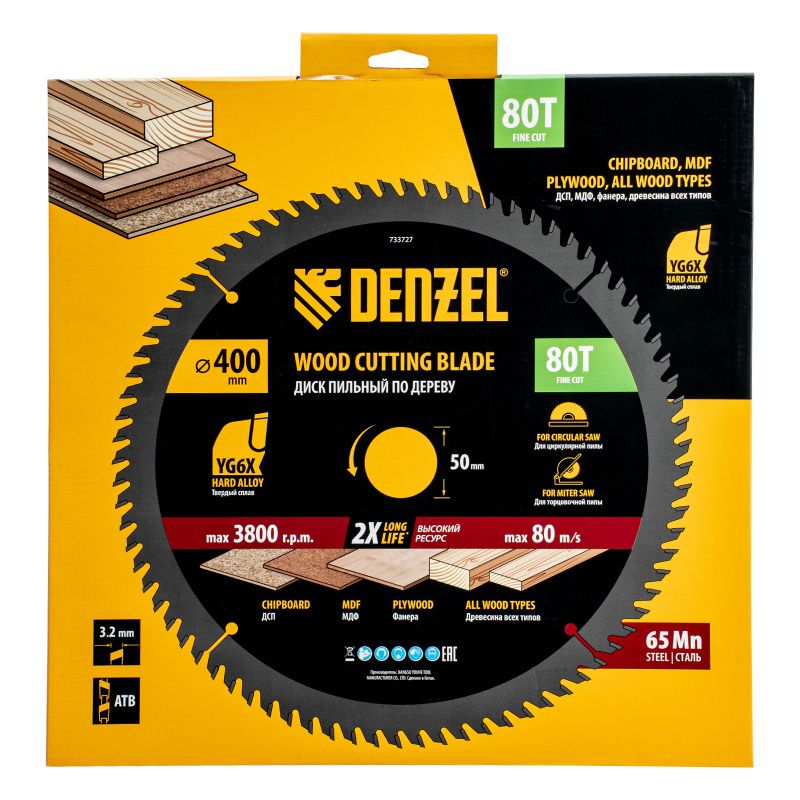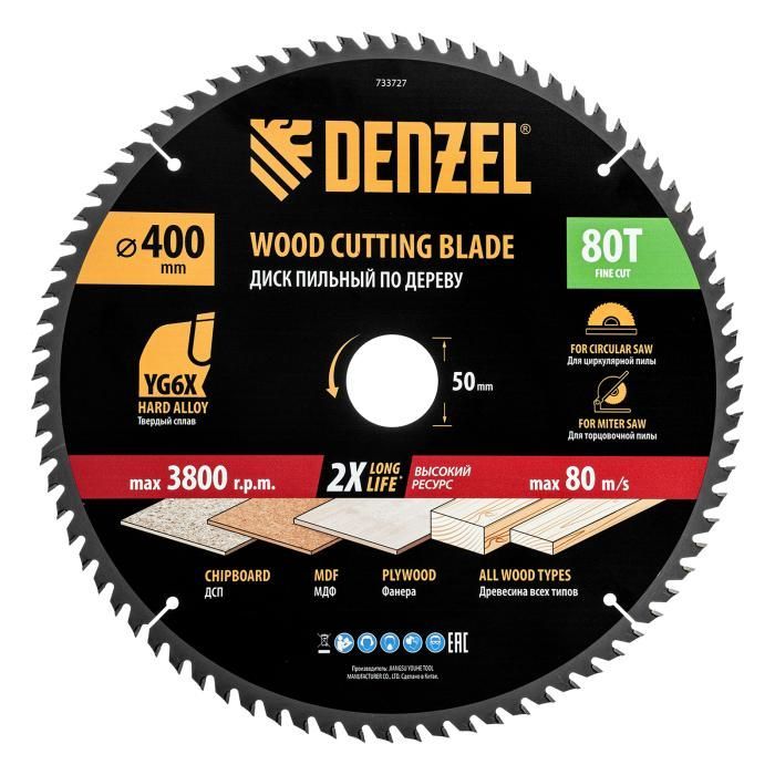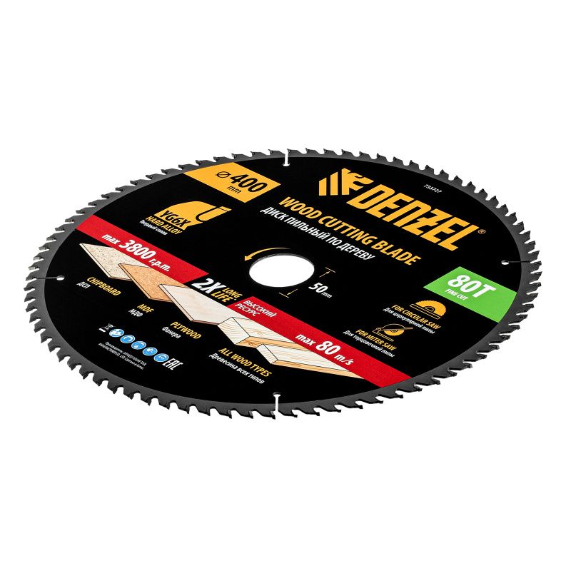 Пильный диск по дереву ф400 х 50 мм, 80 зубьев Denzel, 733727