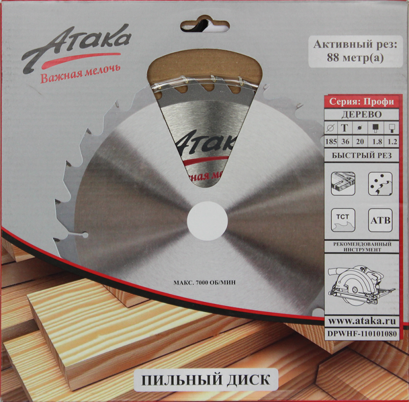 Пильный диск по дереву профи Атака 185*36T*20, 8078590