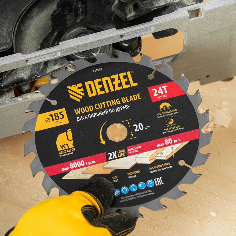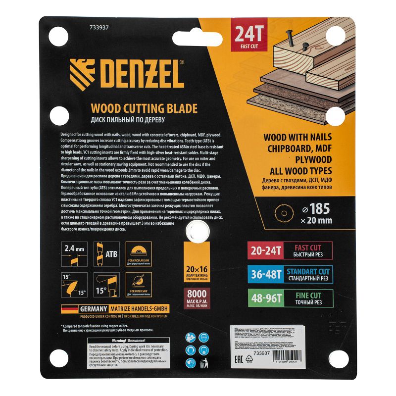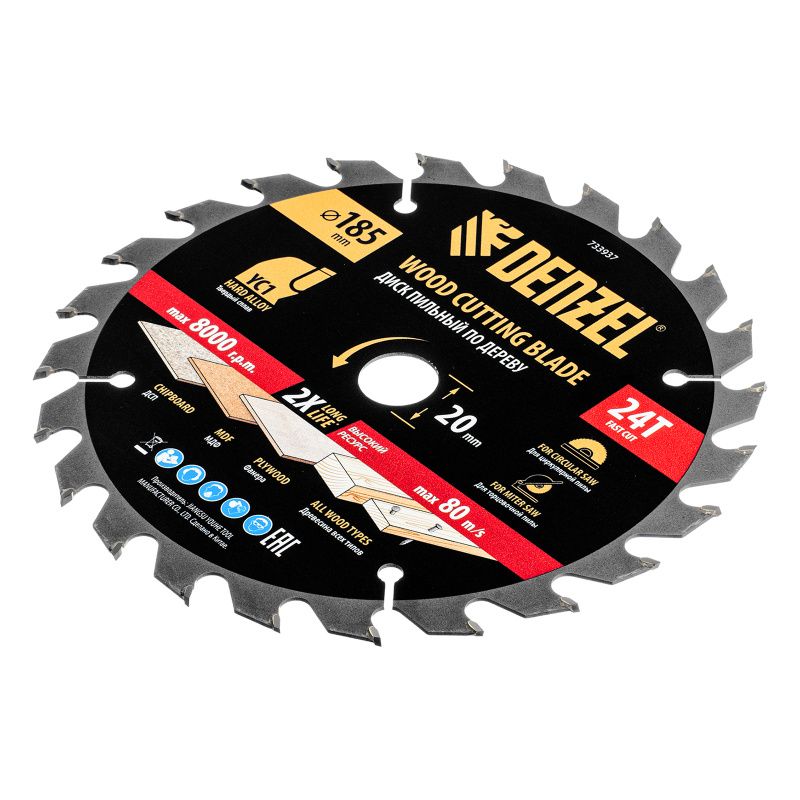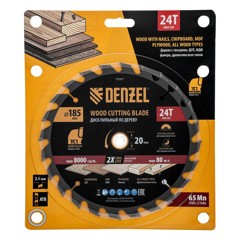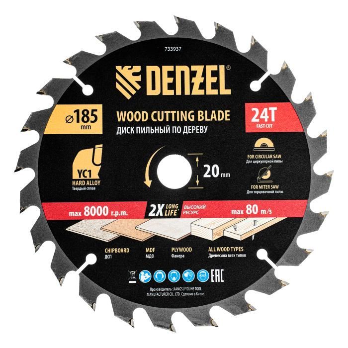 Пильный диск по дереву с гвоздями, ф185 х 20 мм, 24 зубов Denzel, 733937