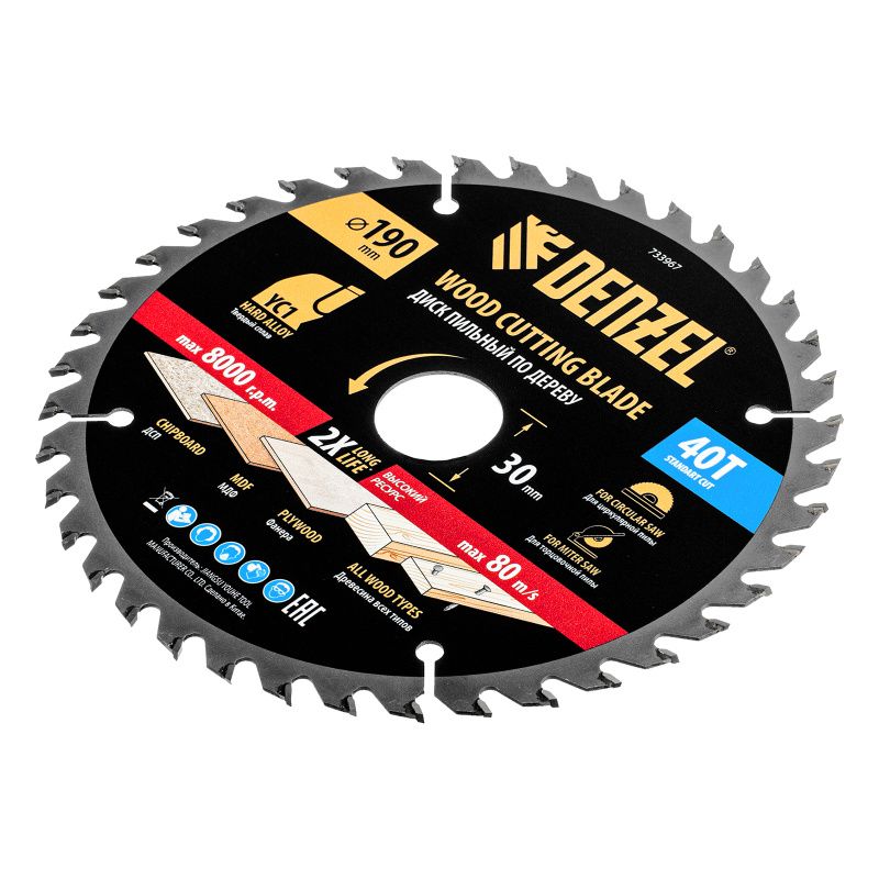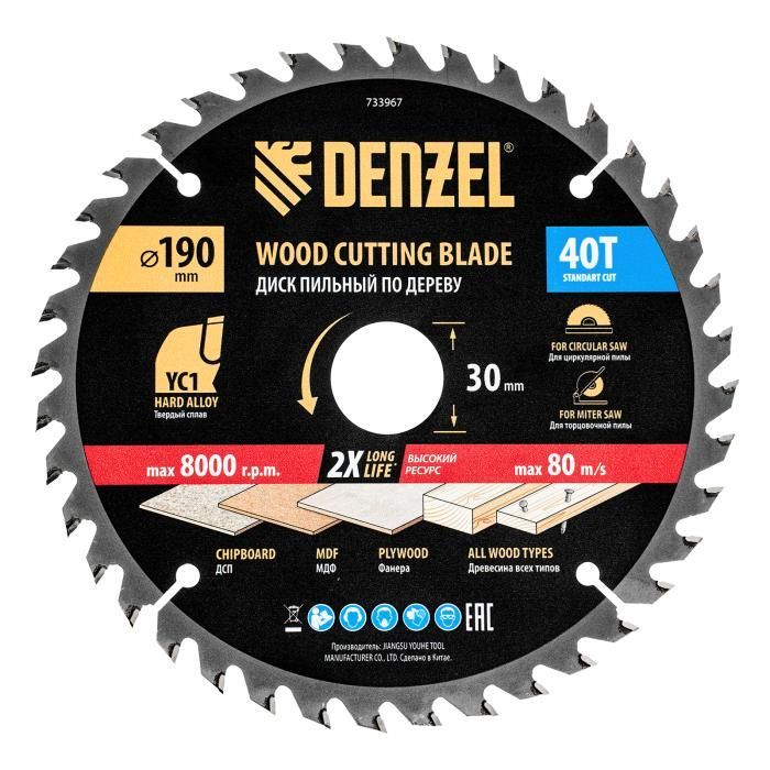 Пильный диск по дереву с гвоздями, ф190 х 30 мм, 40 зубов Denzel, 733967