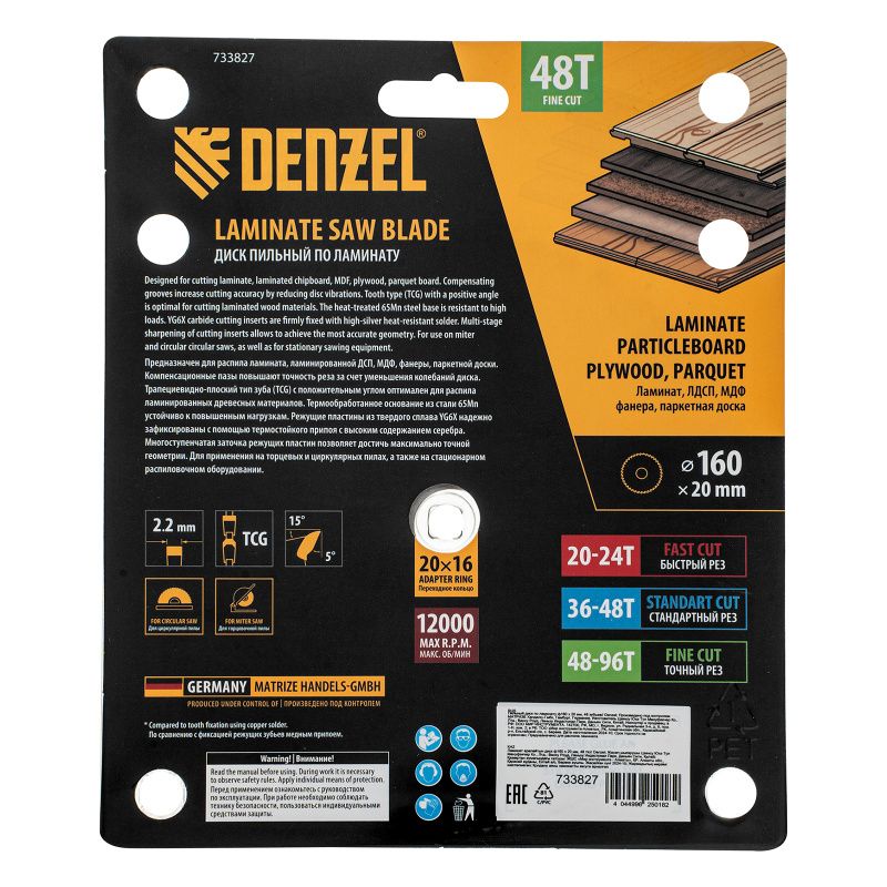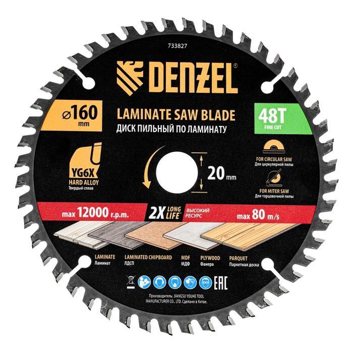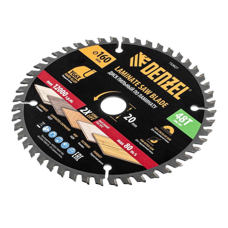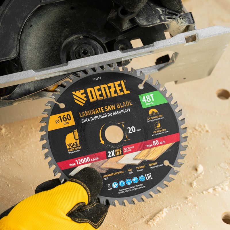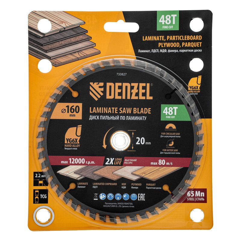 Пильный диск по ламинату ф160 х 20 мм, 48 зубьев Denzel, 733827