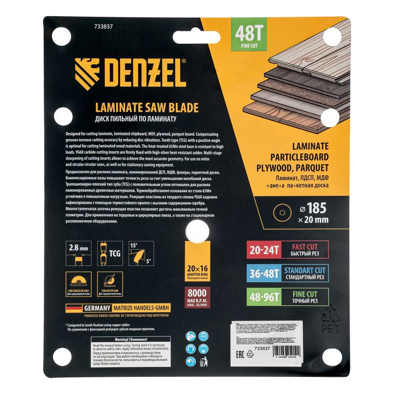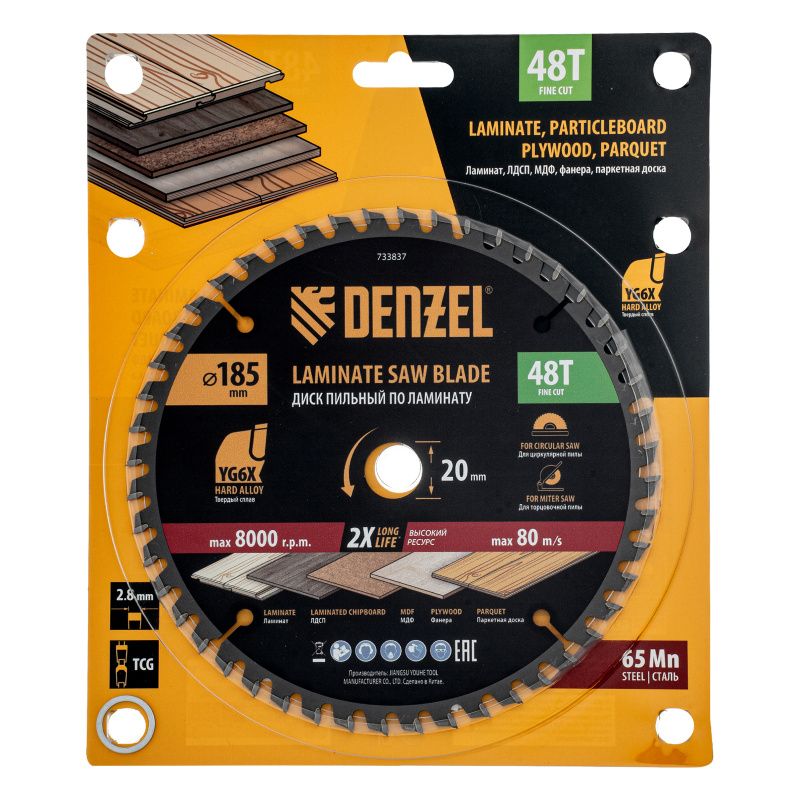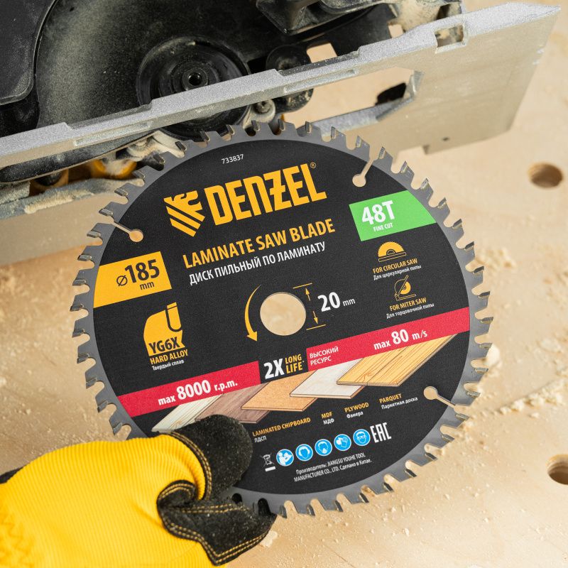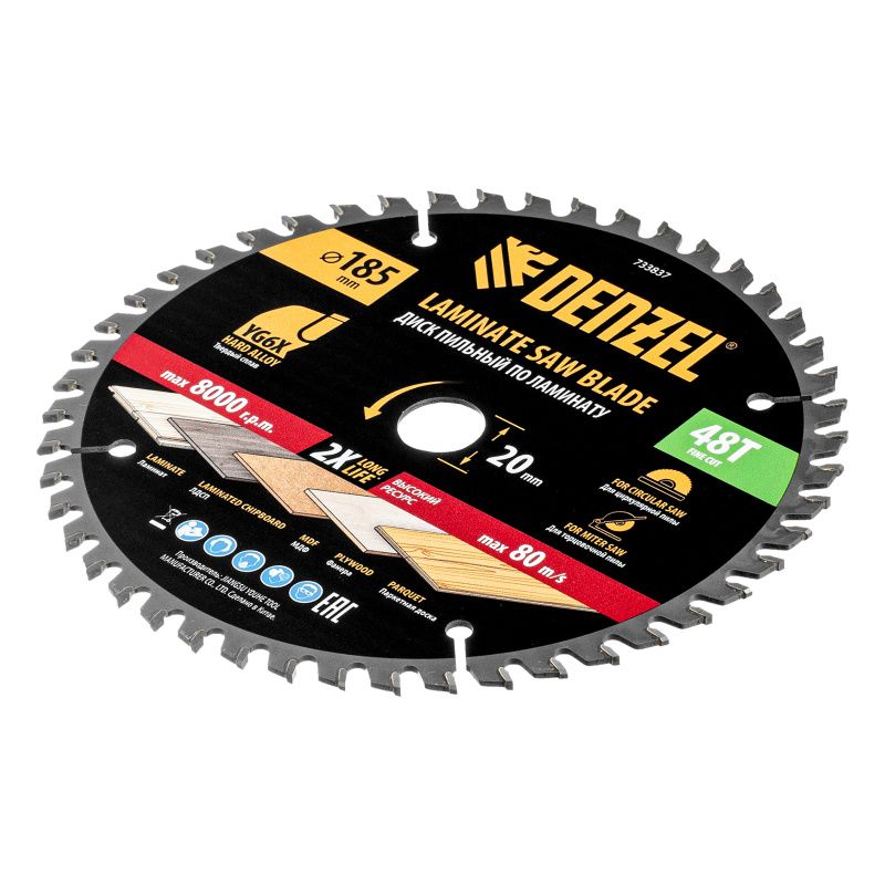Пильный диск по ламинату ф185 х 20 мм, 48 зубьев Denzel, 733837