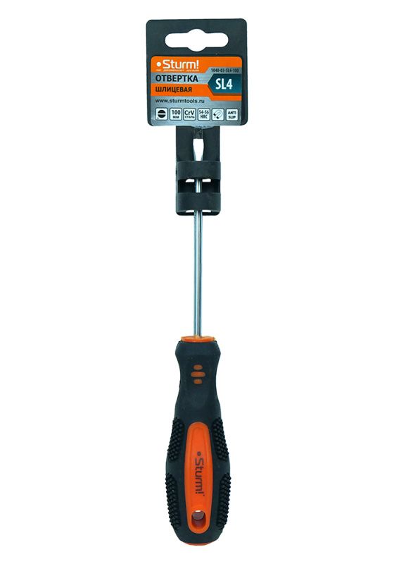 Отвертка плоский шлиц SL4х100мм, CrV, магнитный наконечник Sturm, 1040-03-SL4-100