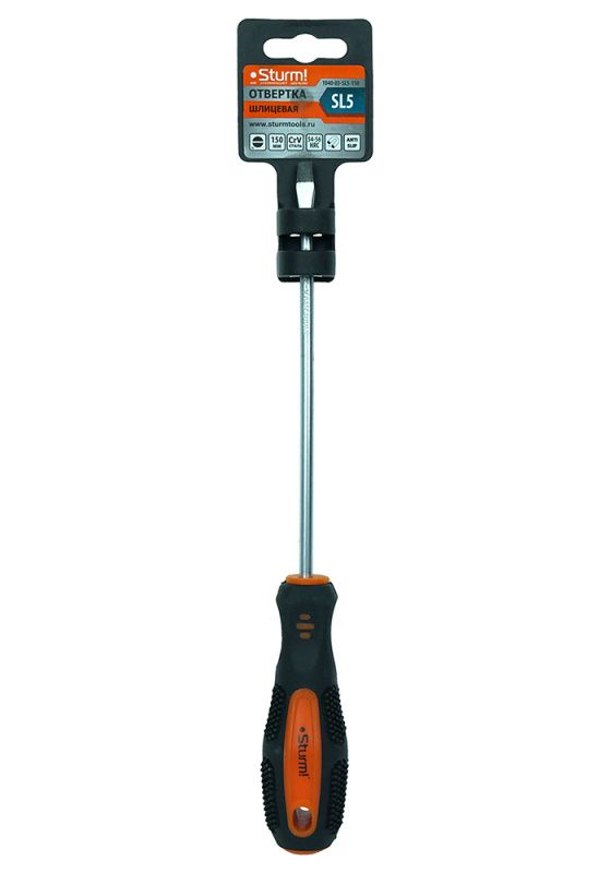 Отвертка плоский шлиц SL5х150мм, CrV, магнитный наконечник Sturm, 1040-03-SL5-150