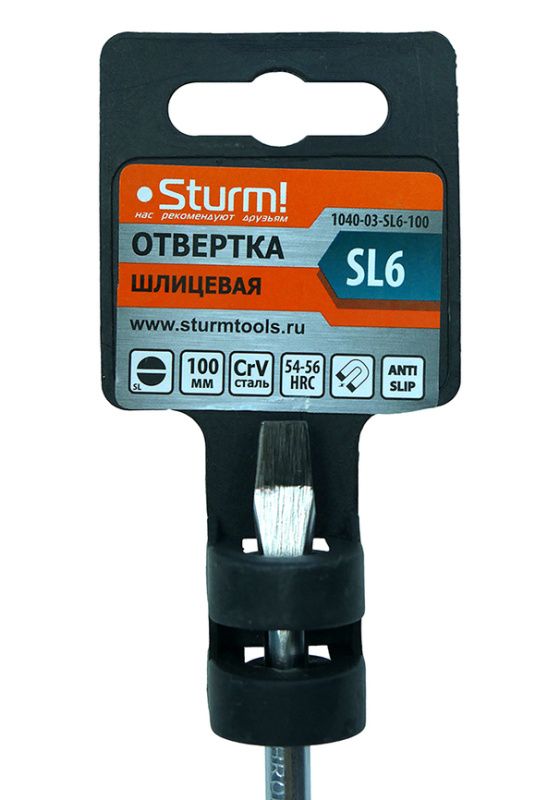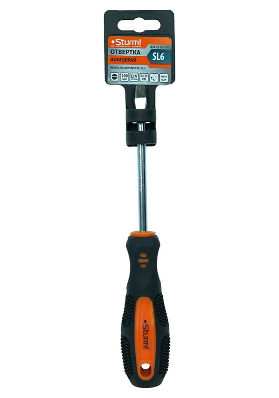 Отвертка плоский шлиц SL6х100мм, CrV, магнитный наконечник Sturm, 1040-03-SL6-100