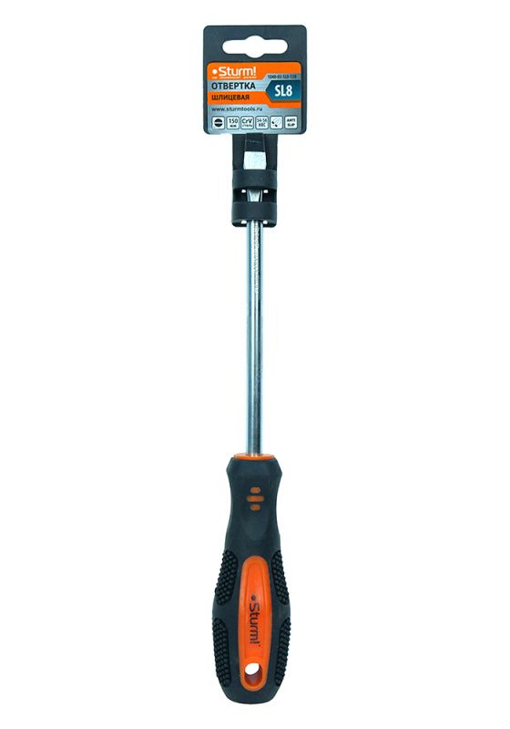 Отвертка плоский шлиц SL8х150мм, CrV, магнитный наконечник Sturm, 1040-03-SL8-150
