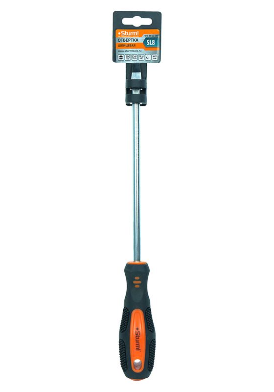 Отвертка плоский шлиц SL8х200мм, CrV, магнитный наконечник Sturm, 1040-03-SL8-200