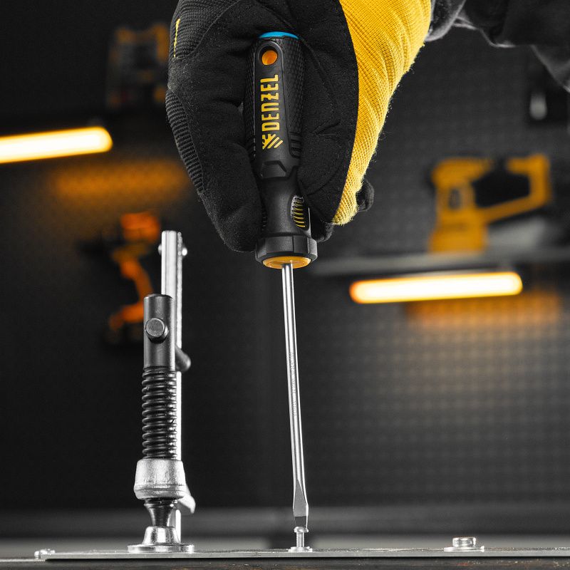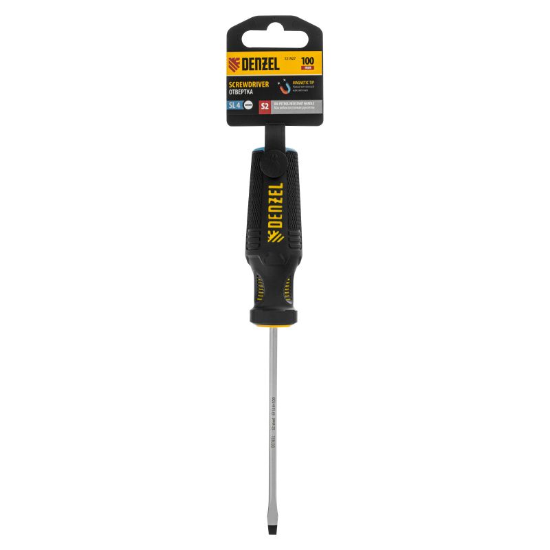 Отвертка, SL4х100 мм, S2, 3к рукоятка Denzel, 121927