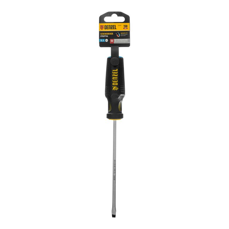 Отвертка, SL5x150 мм, S2, 3к рукоятка Denzel, 121977