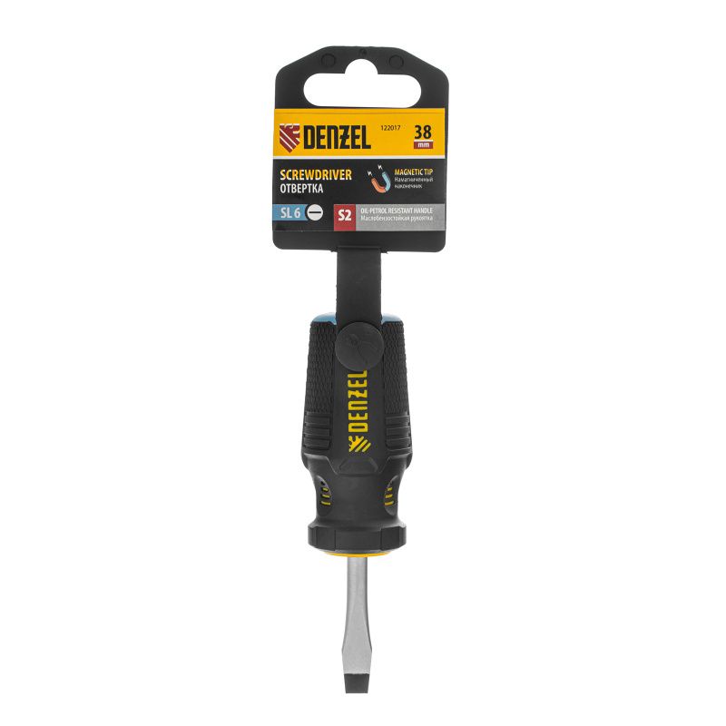 Отвертка, SL6x38 мм, S2, 3к рукоятка Denzel, 122017