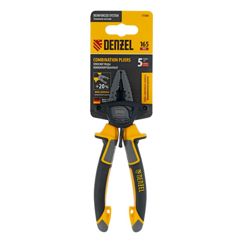 Плоскогубцы комбинированные 165 мм, трехкомпонентные рукоятки Denzel, 17080