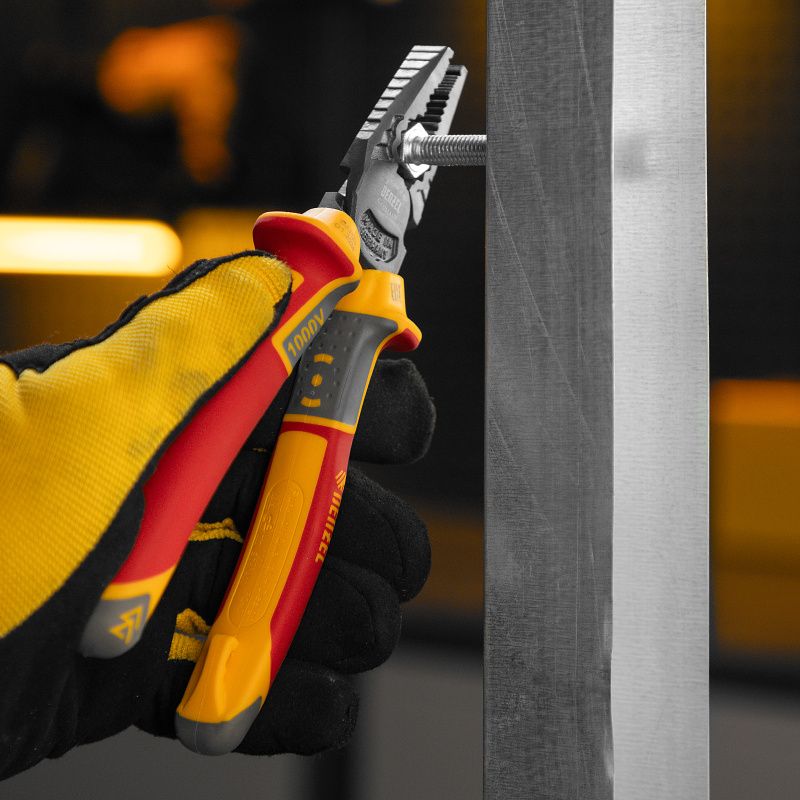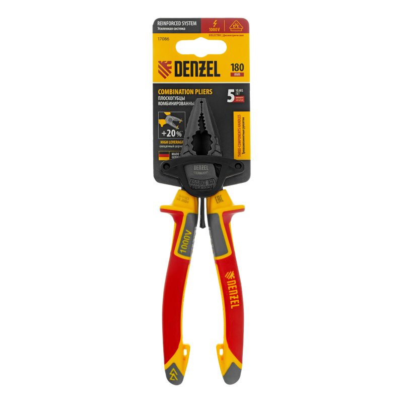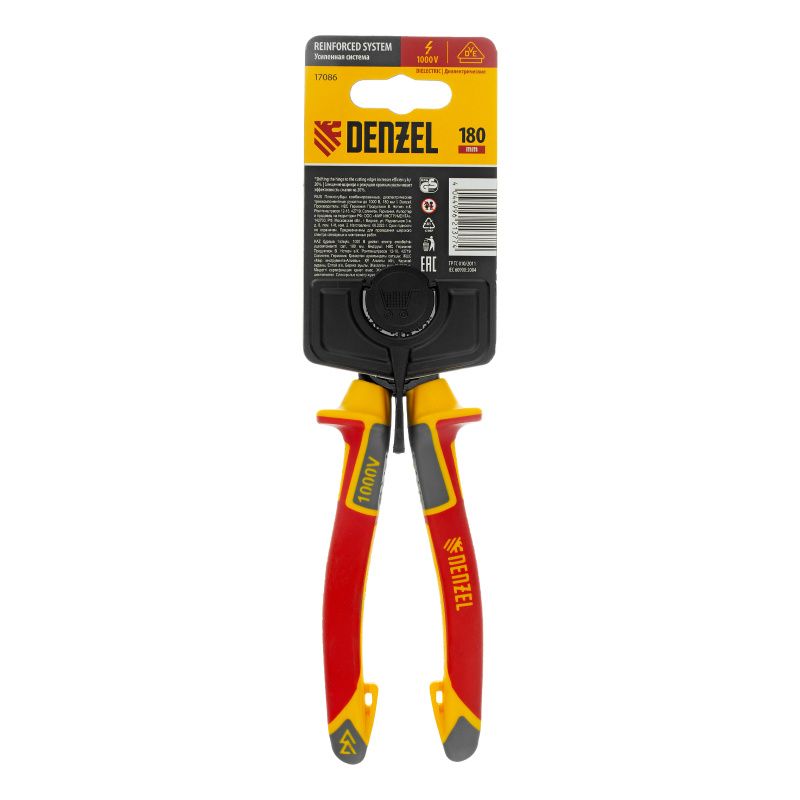 Плоскогубцы комбинированные, диэлектрические трехкомпонентные рукоятки до 1000 В, 180 мм Denzel, 17086