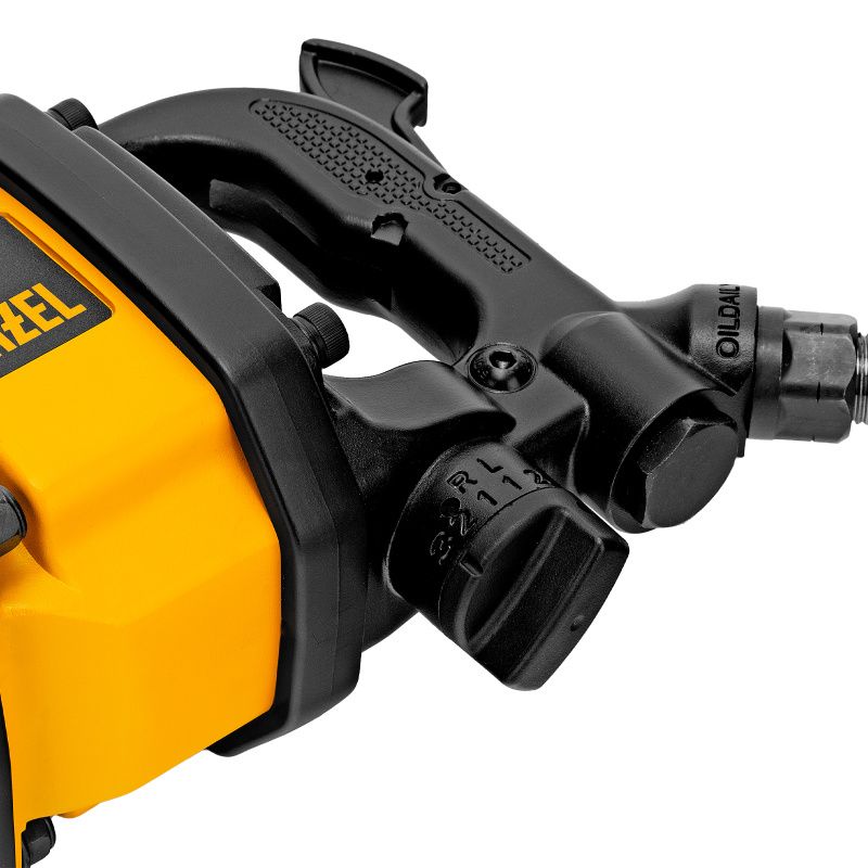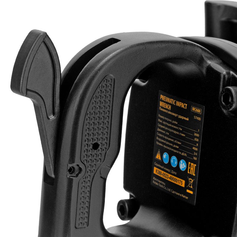 Ударный пневмогайковерт Denzel IW2600 оснащен удобной рукояткой, которая обеспечивает надежный захват и комфорт при работе. Инструмент также имеет встроенный механизм для снижения вибрации, что позволяет снизить утомляемость и повысить безопасность во время работы.
