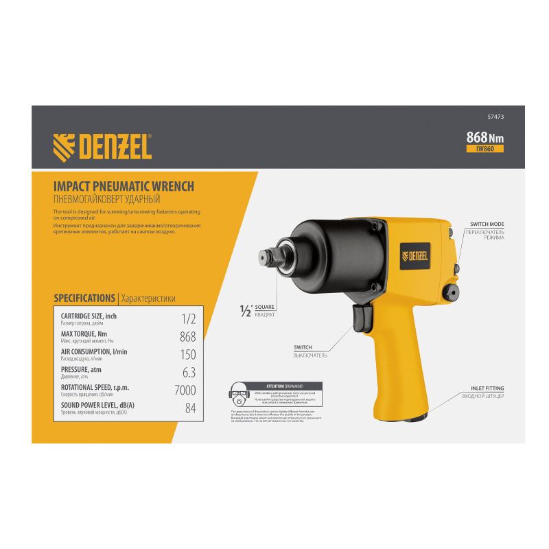 Ударный пневмогайковерт Denzel IW860+набор головок, 57473