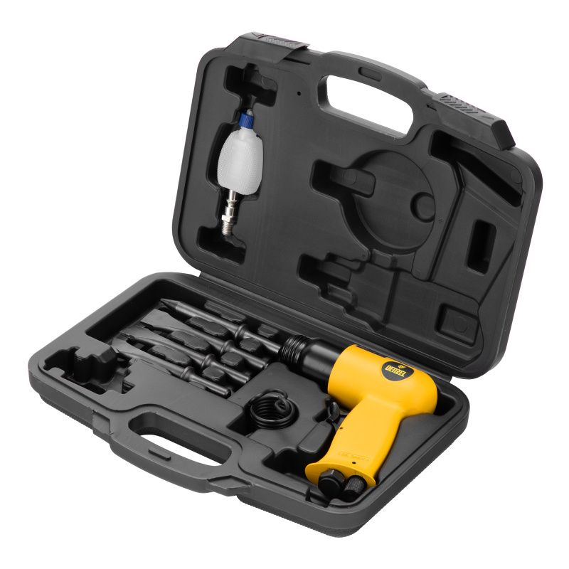 | Комплектация* | пневмомолоток, набор насадок, масленка, штуцер, кейс, инструкция на русском языке, гарантийный талон, упаковка |