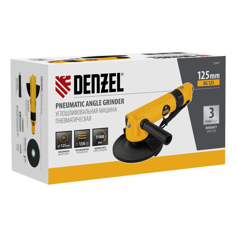 Пневматическая углошлифовальная машина Denzel AG125, 57477