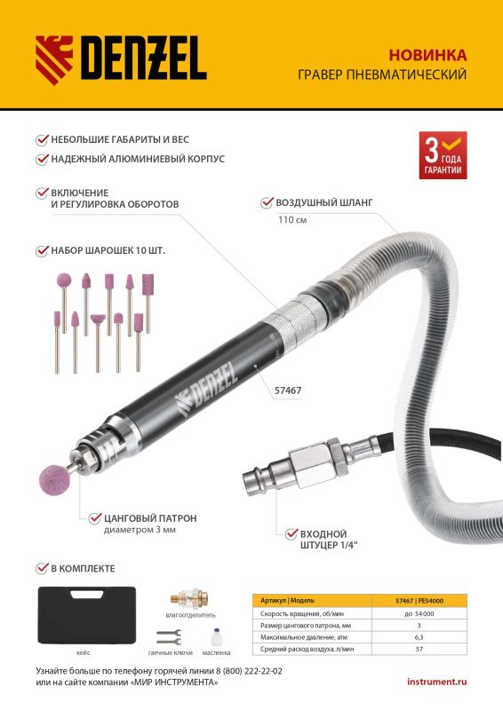Пневматический гравер Дензел PE54000 - это надежный и мощный инструмент, который позволяет производить точную и качественную гравировку на различных поверхностях. Благодаря своей компактности и эргономичному дизайну, этот гравер легко управлять и удобно использовать.