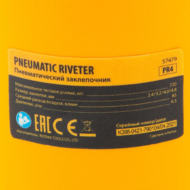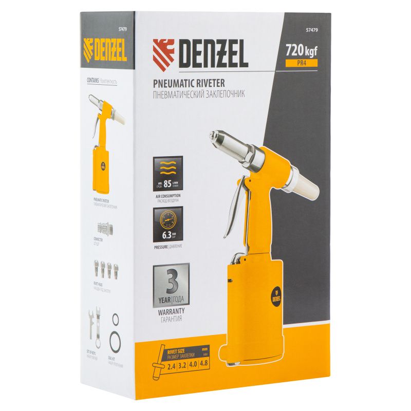 Пневматический заклепочник PR4, 2,4-4,8 мм Denzel, 57479