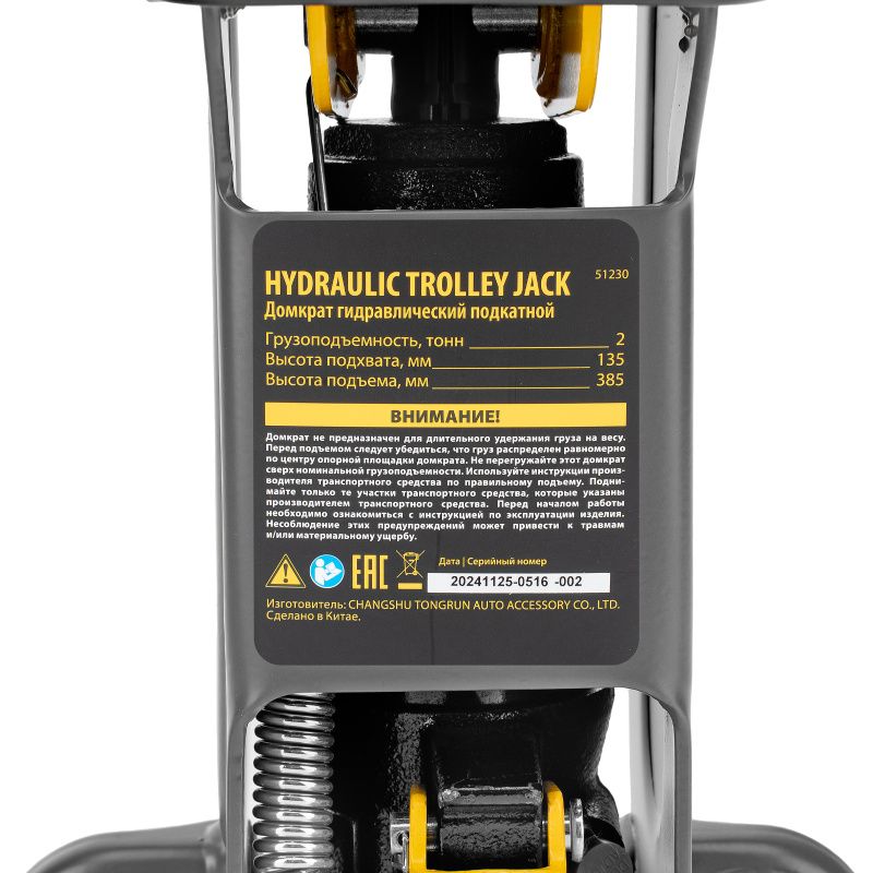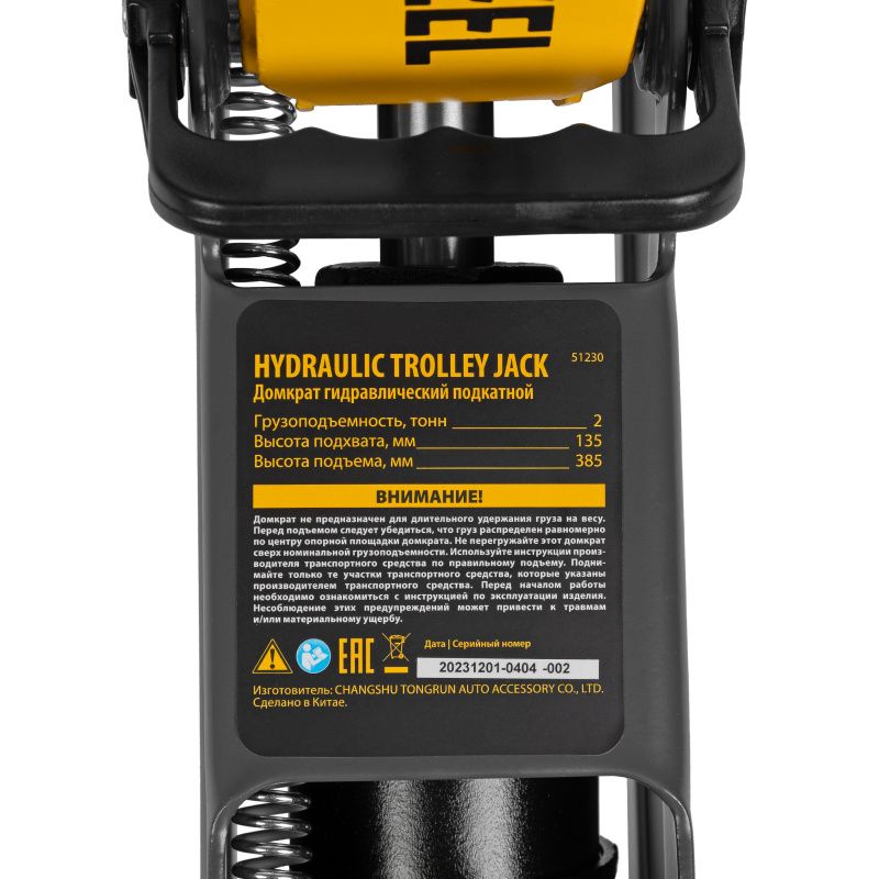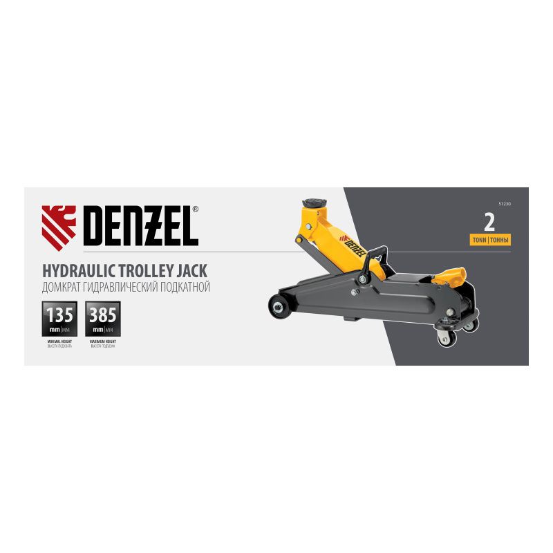 Домкрат гидравлический подкатной, 2 т, 135-385 мм Denzel, 51230