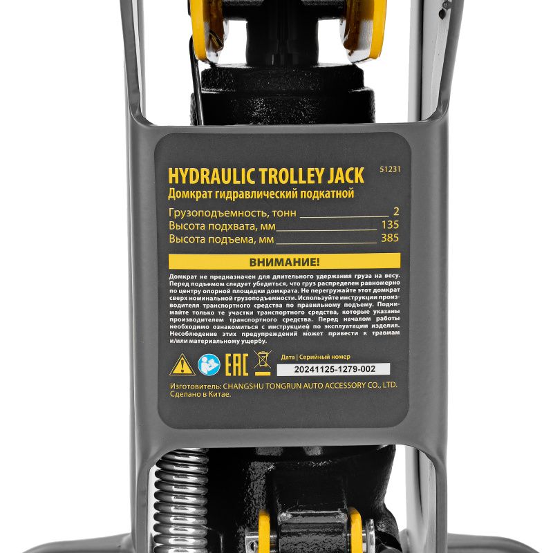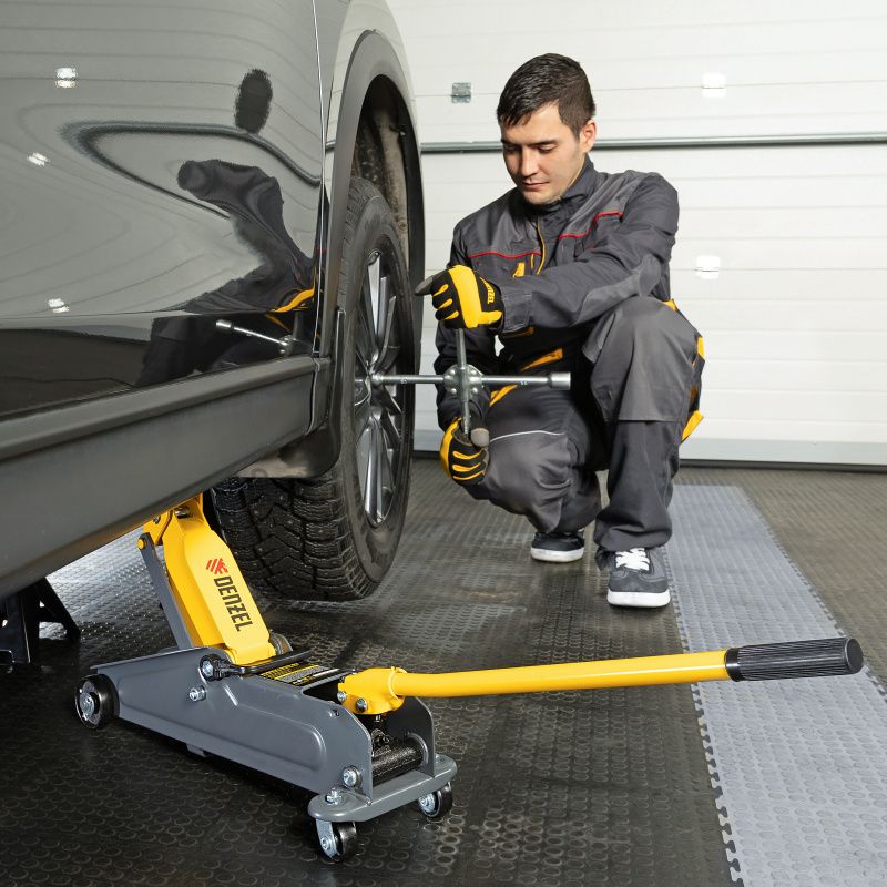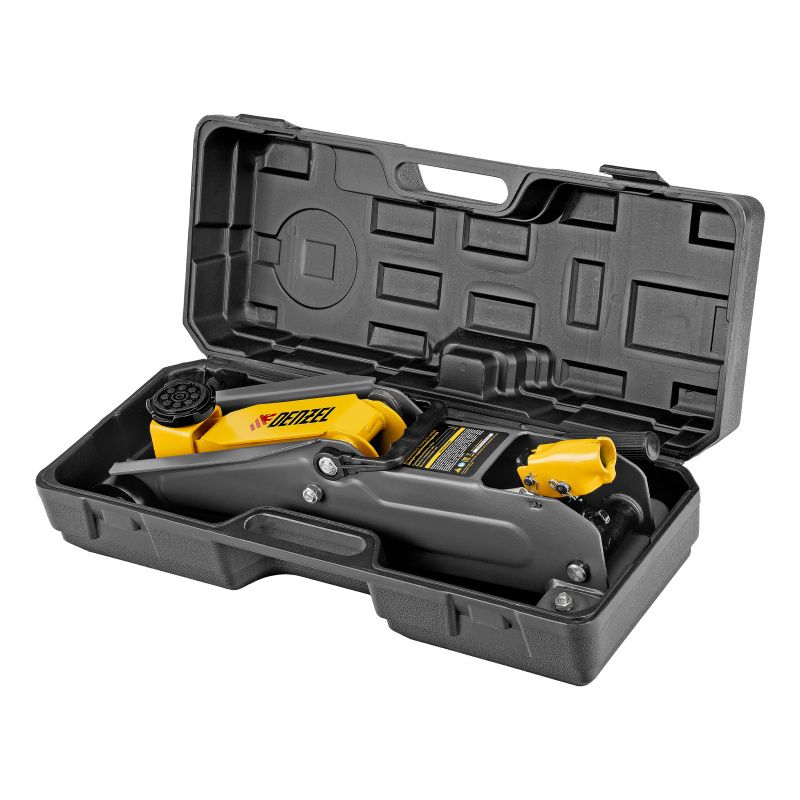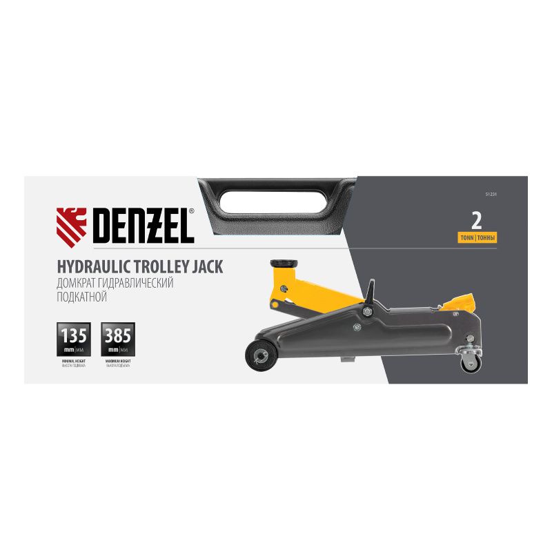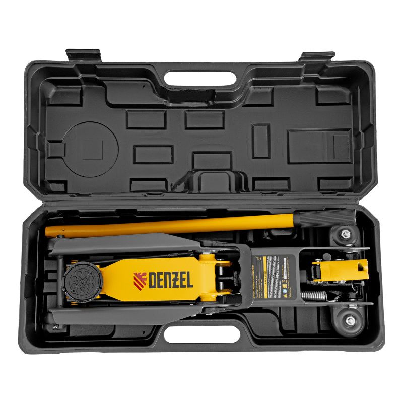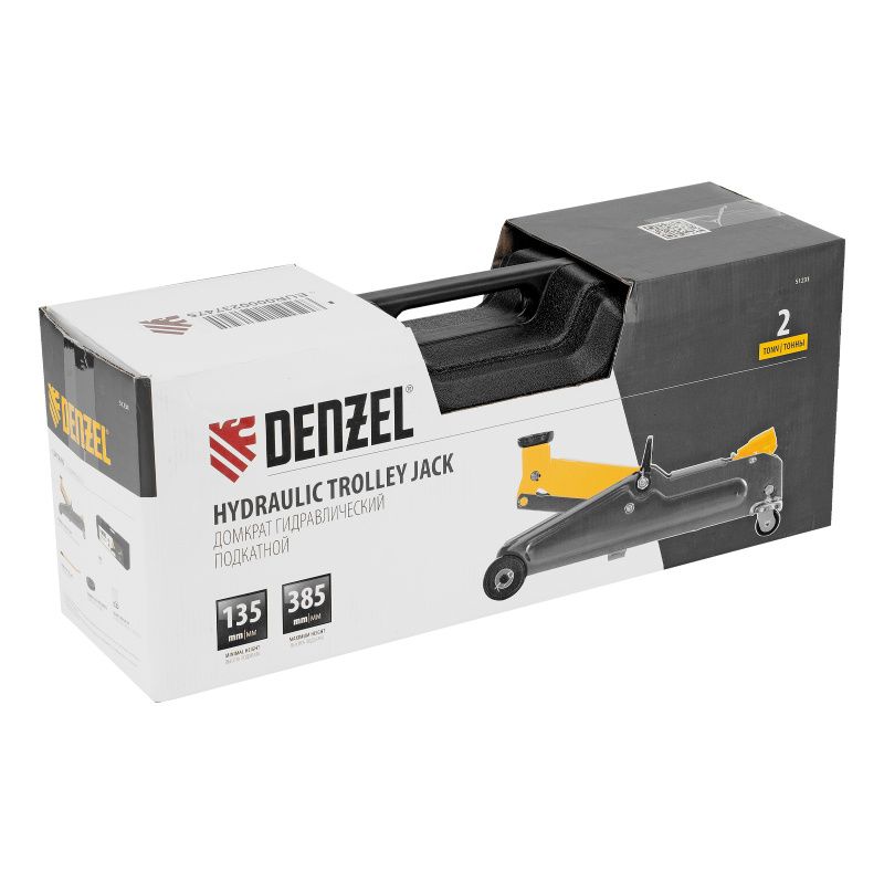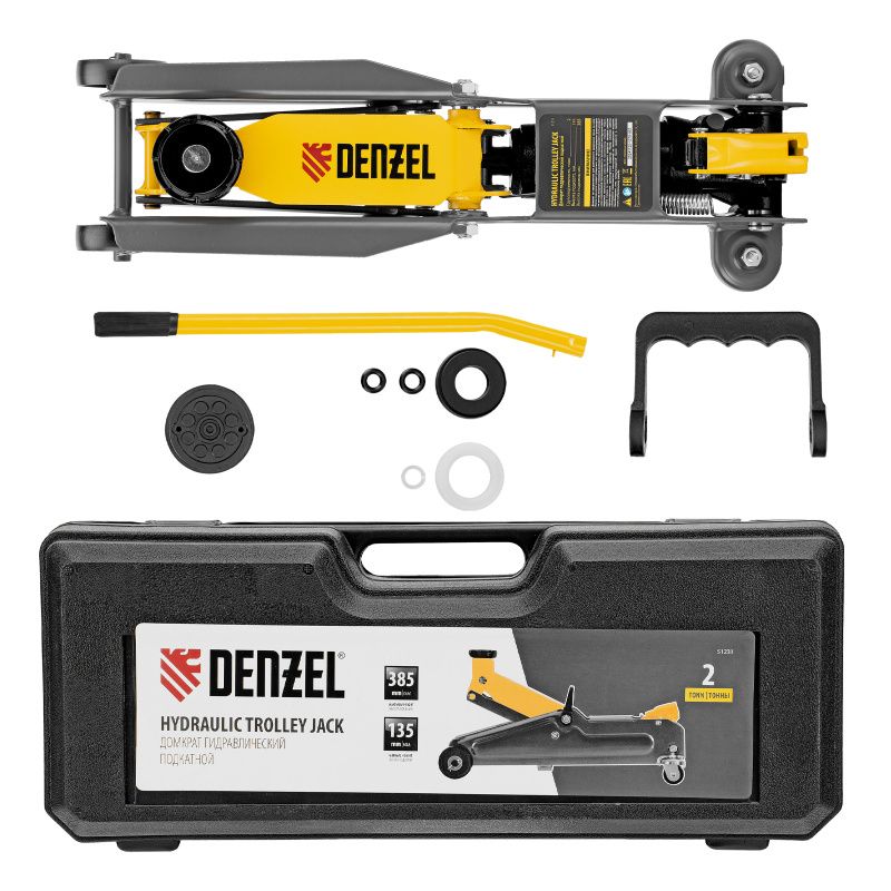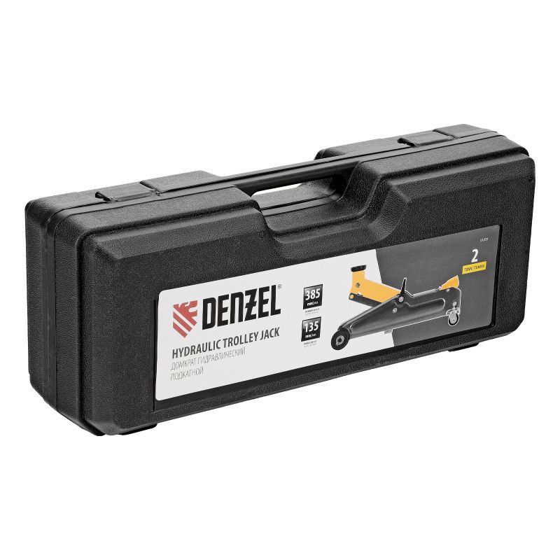 Домкрат гидравлический подкатной, 2 т, 135-385 мм, в пласт. кейсе Denzel, 51231