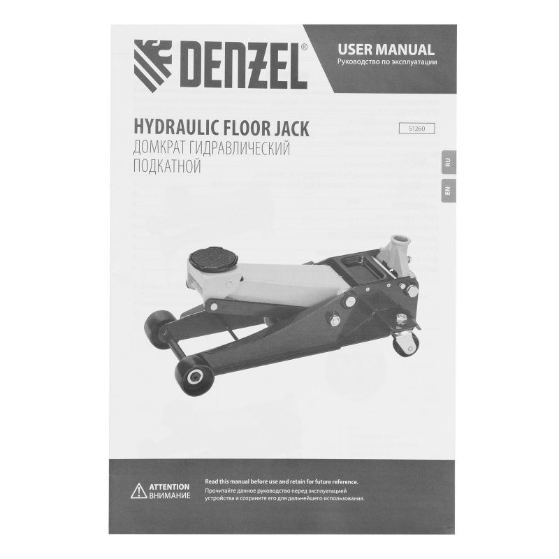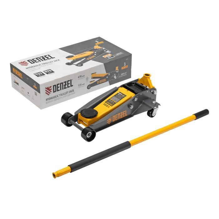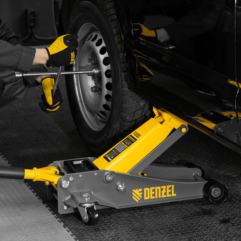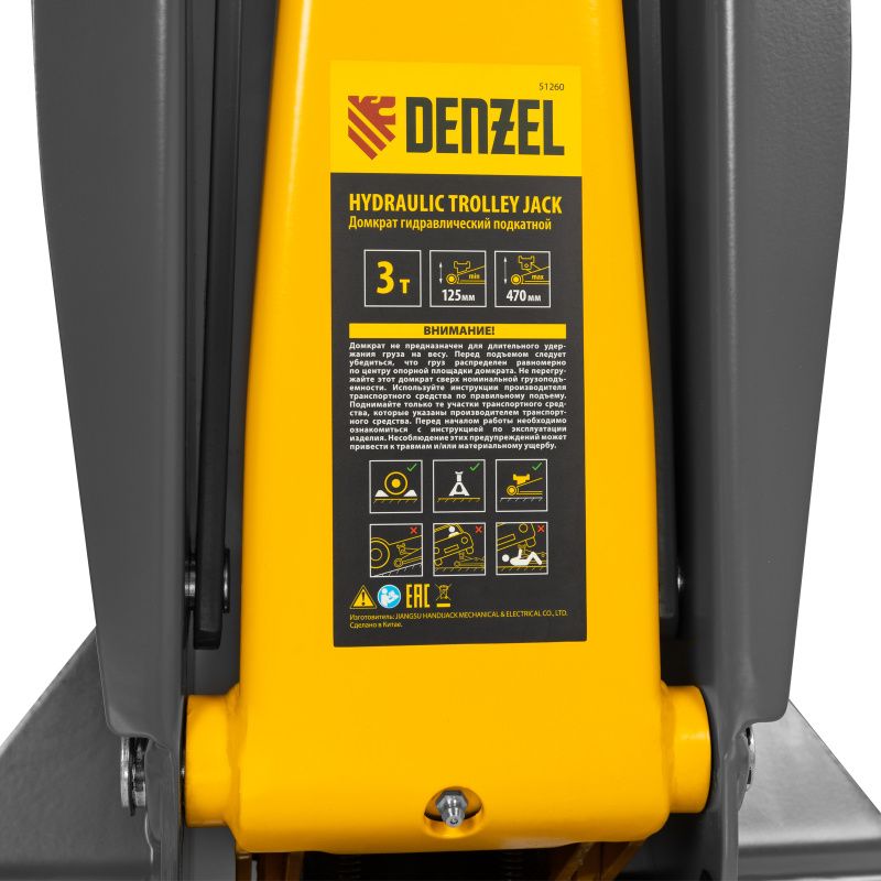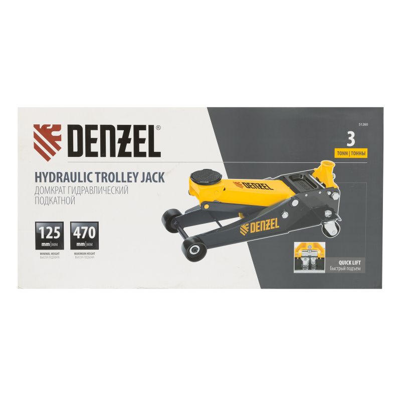 Домкрат гидравлический подкатной, 3 т, 125-470 мм, быстрый подъем, проф. Denzel, 51260