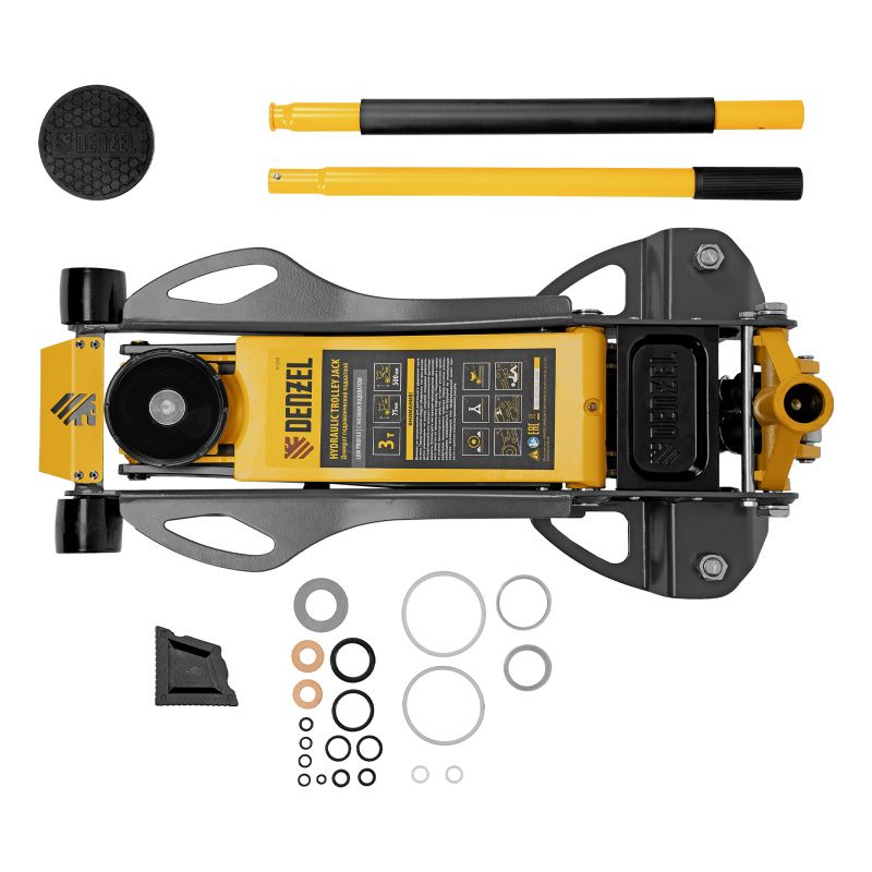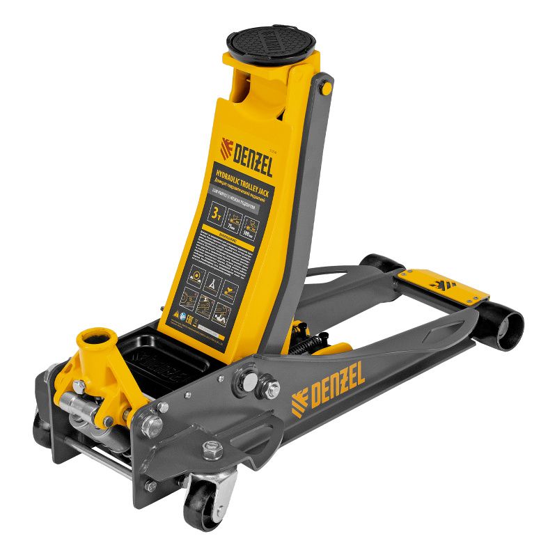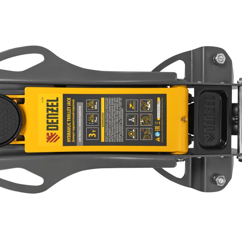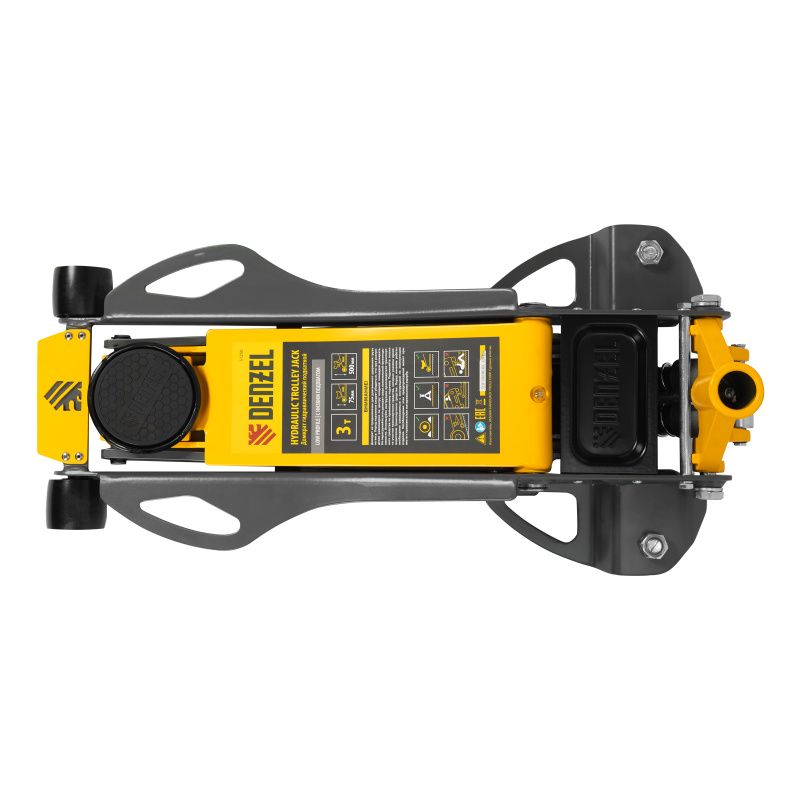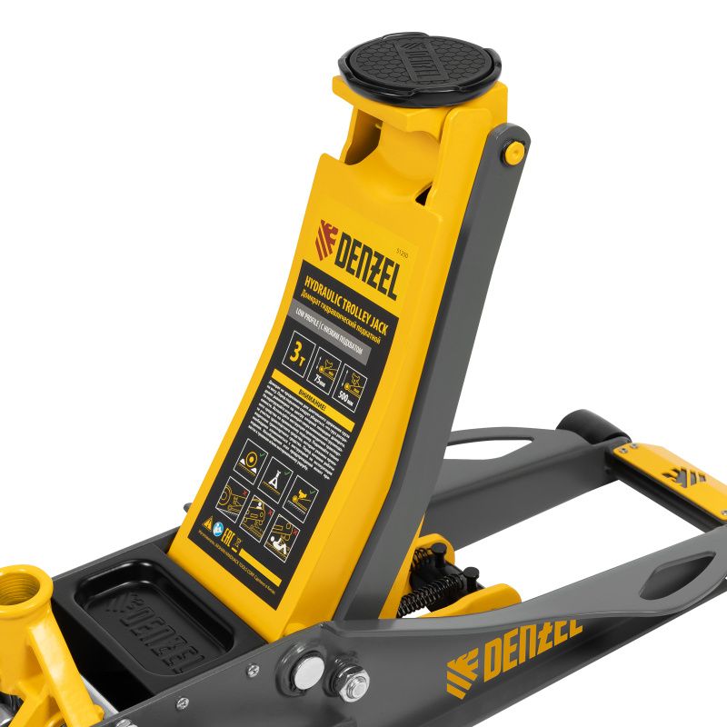 Домкрат гидравлический подкатной, 3 т, 75-500 мм, быстрый подъем, низкий подхват, проф. Denzel, 51250