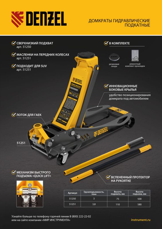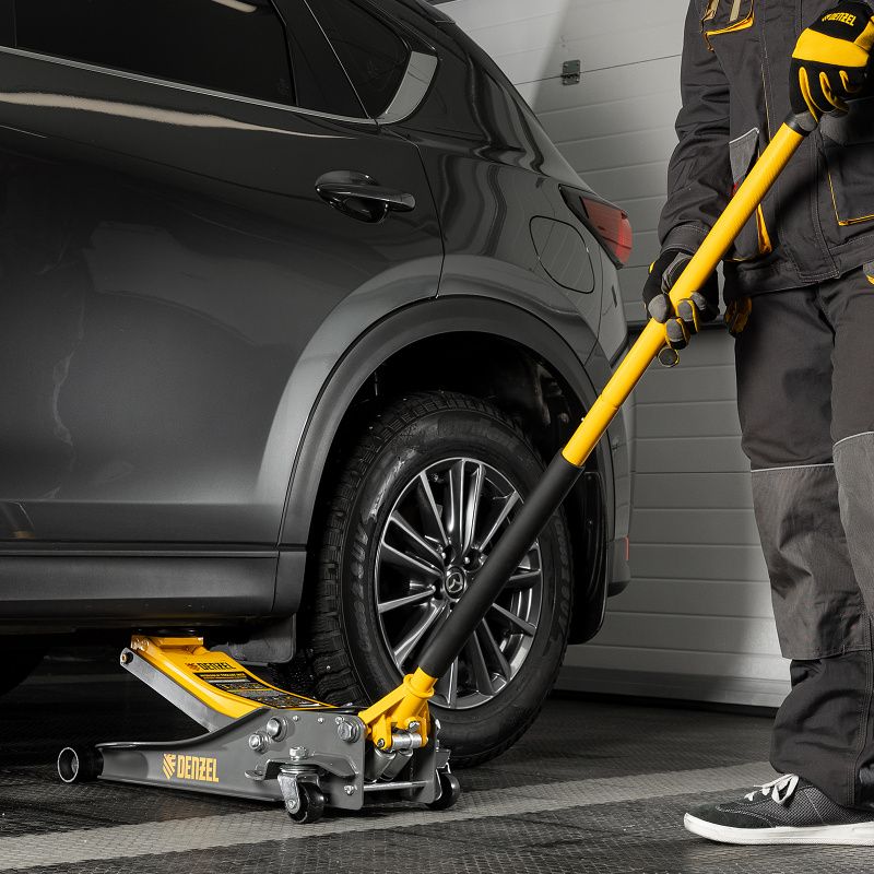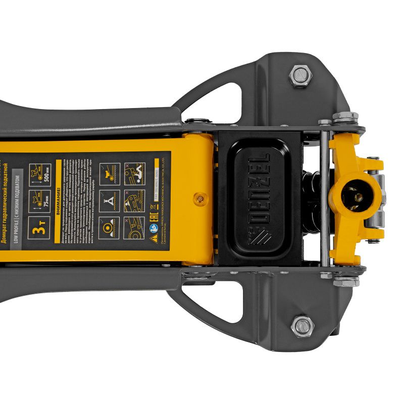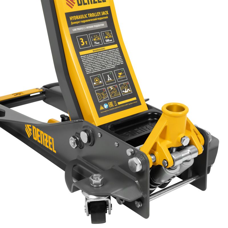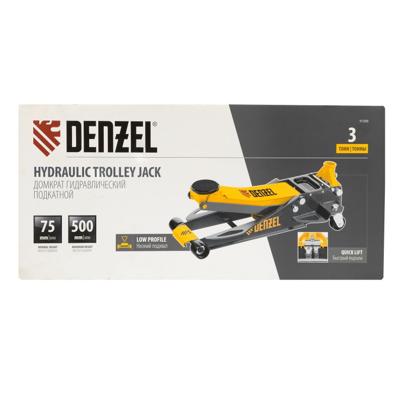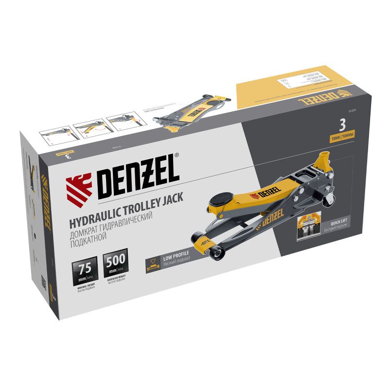 Домкрат гидравлический подкатной, 3 т, 75-500 мм, быстрый подъем, низкий подхват, проф. Denzel, 51250