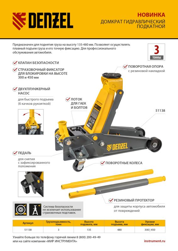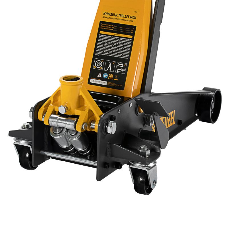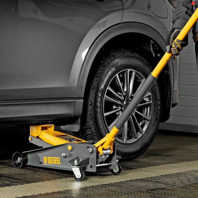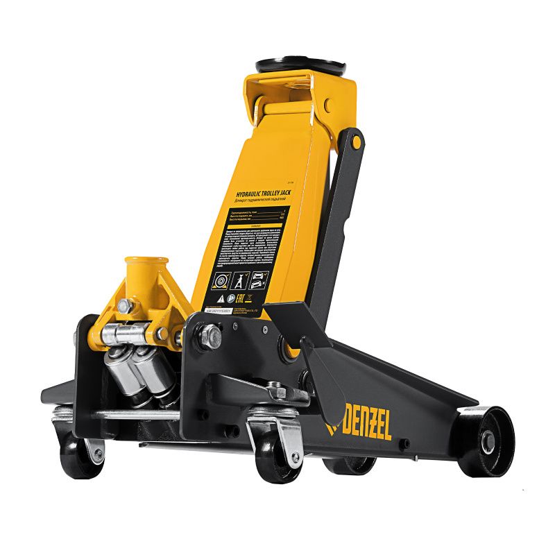 Домкрат гидравлический подкатной 3 т, с фиксатором, быстрый подъем, 135-480 мм, профессиональный Denzel, 51138