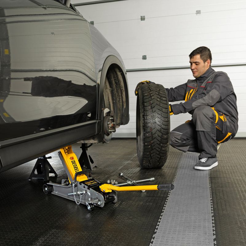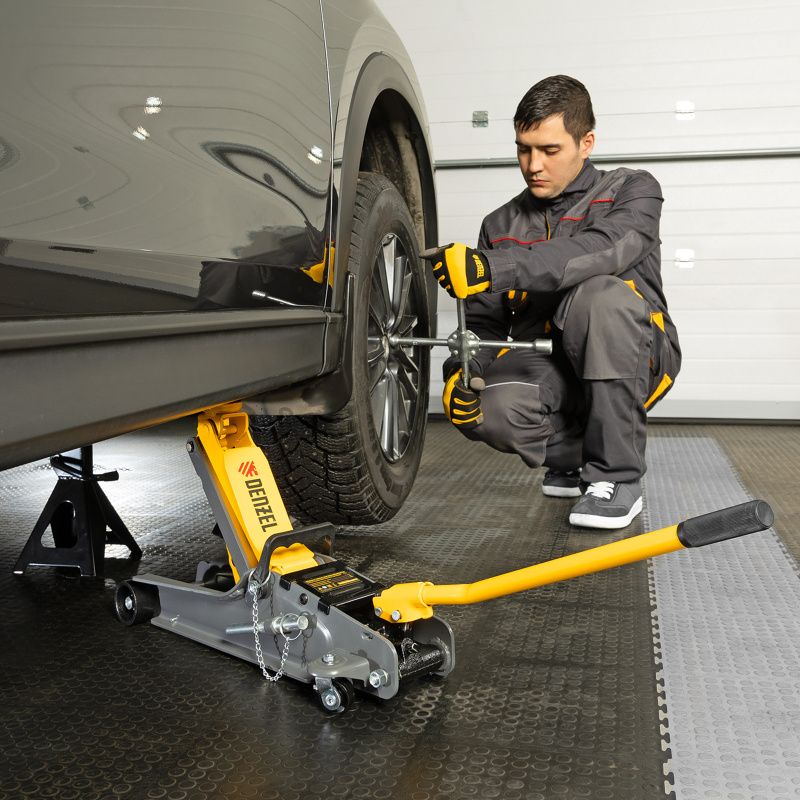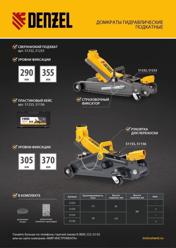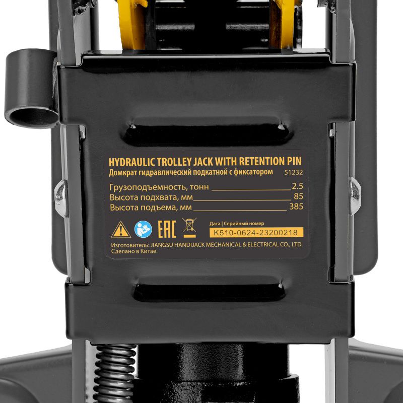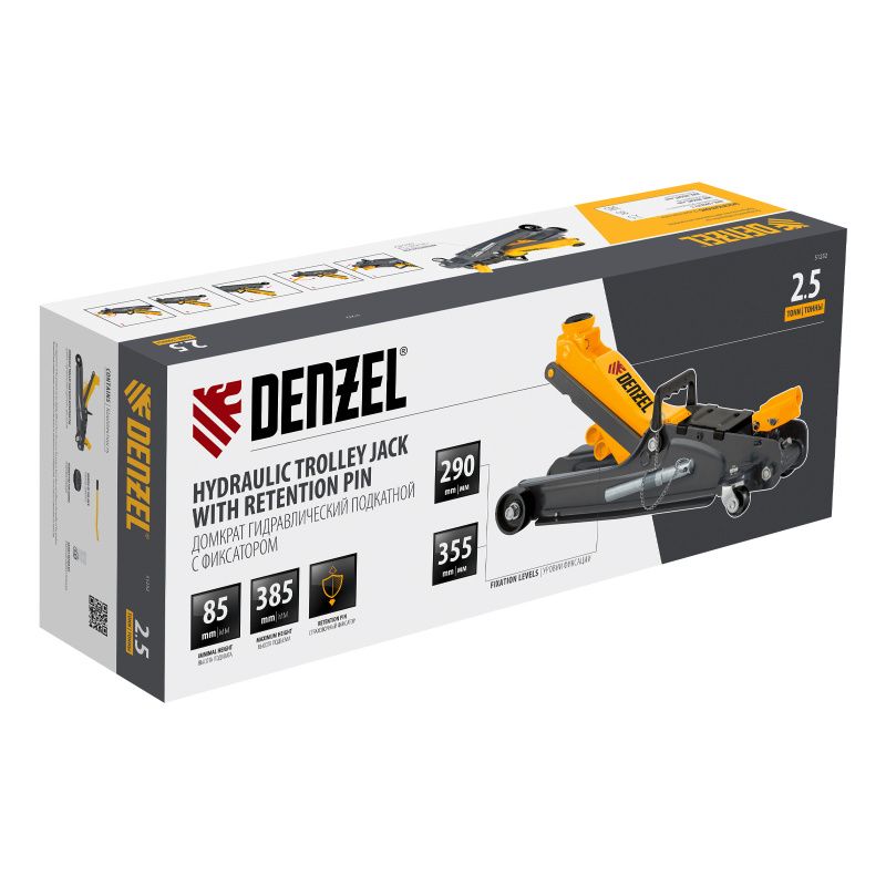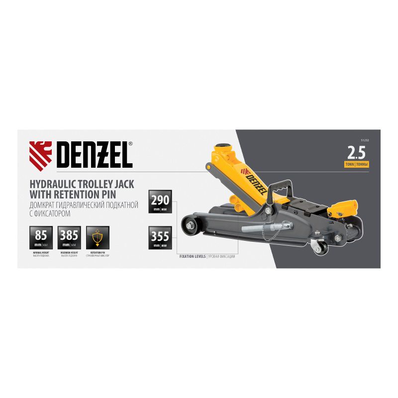 Домкрат гидравлический подкатной с фиксатором, 2,5 т, 85-385 мм Denzel, 51232