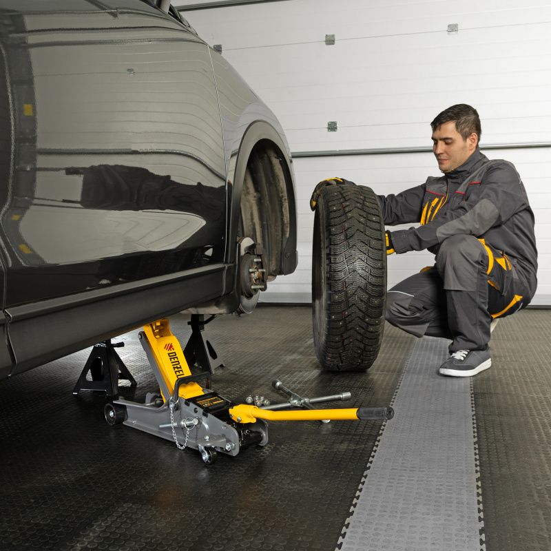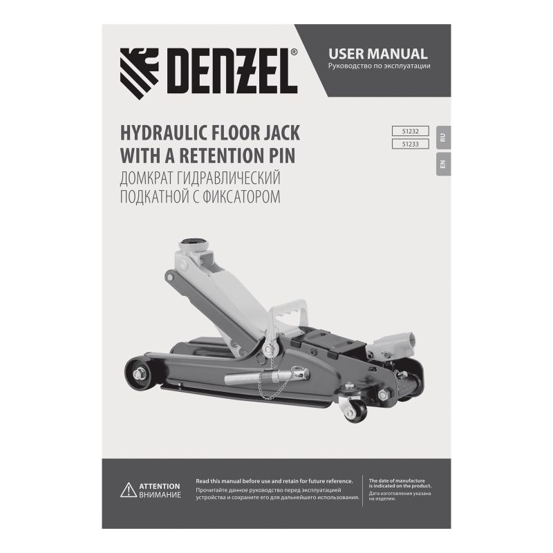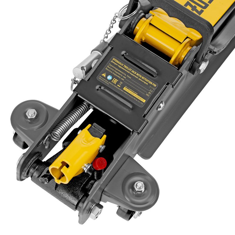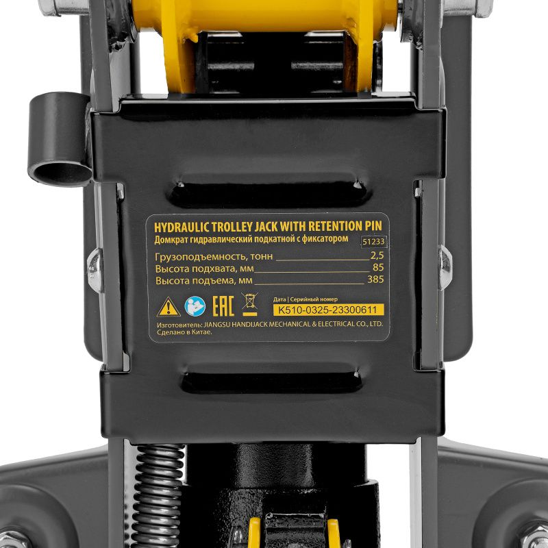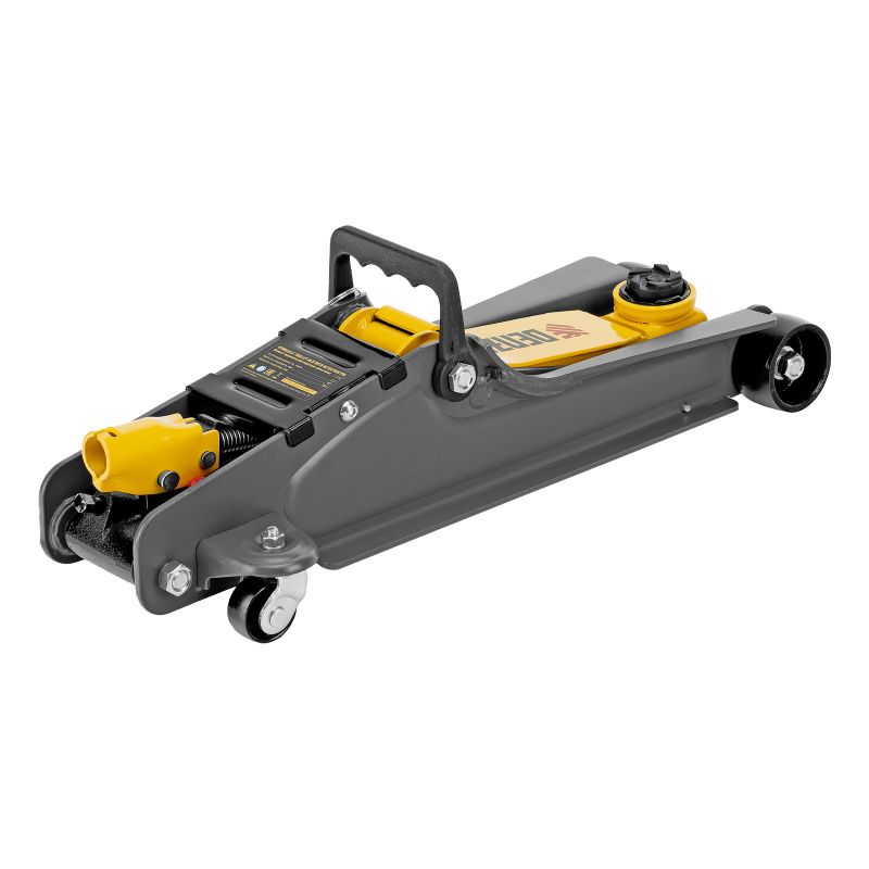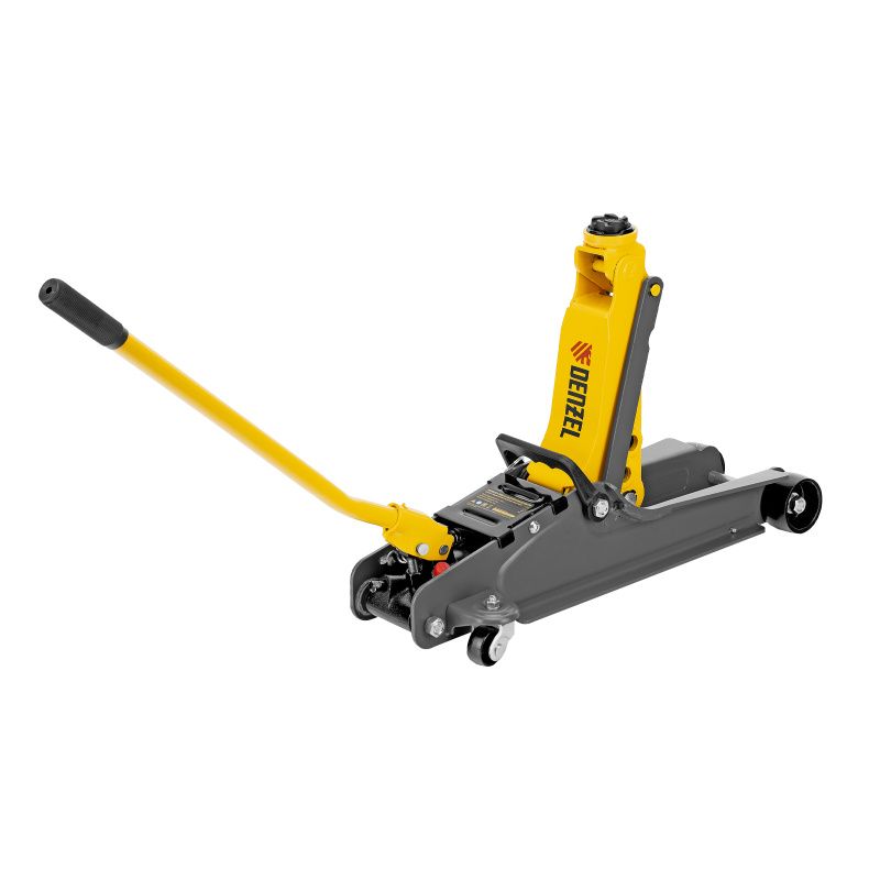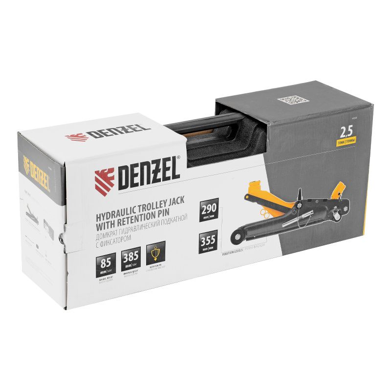 Домкрат гидравлический подкатной с фиксатором, 2,5 т, 85-385 мм, в пласт. кейсе Denzel, 51233