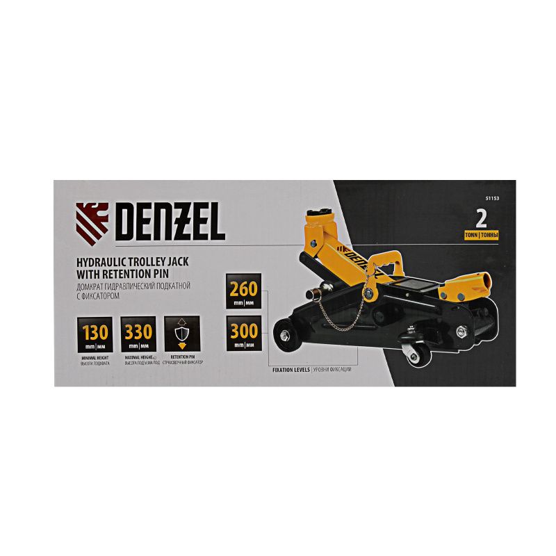 Домкрат гидравлический подкатной с фиксатором, 2 т, 130-330 мм Denzel, 51153