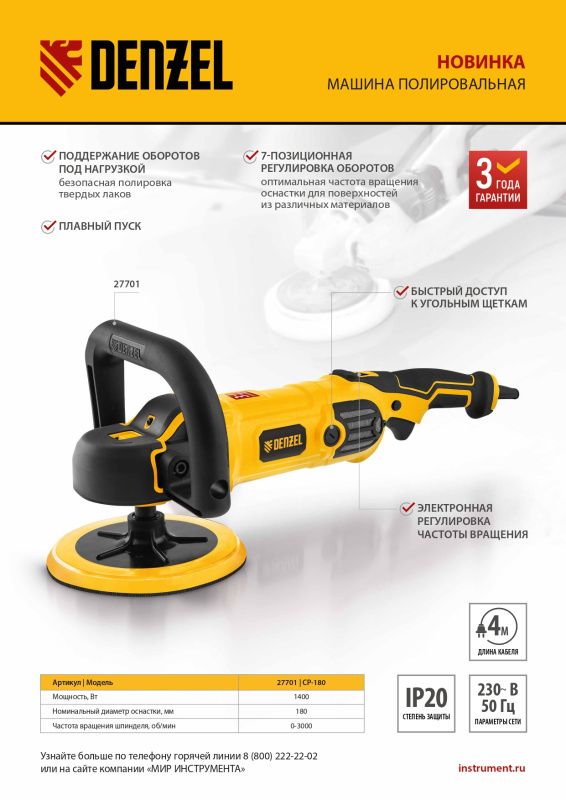 Машина полировальная Denzel CP-180, 27701
