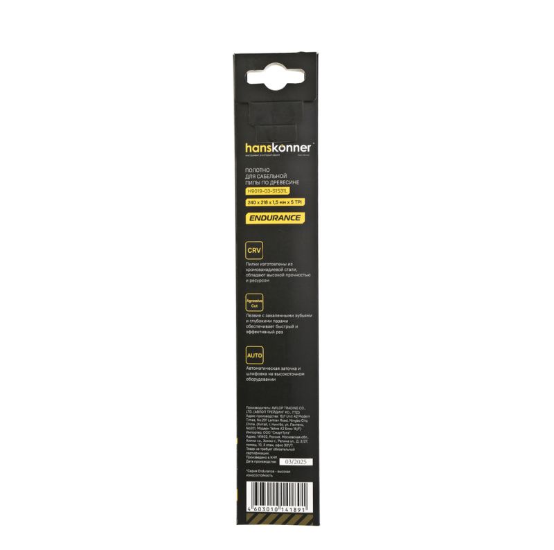 Полотна для сабельных пил Hanskonner H9019-03-S1531L, H9019-03-S1531L