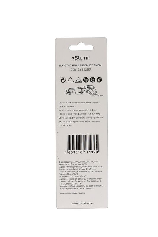 Полотно для сабельной пилы МЕТАЛЛ 2шт 150/1,4мм (тонк лист/труб/проф) Sturm, 9019-03-S922EF