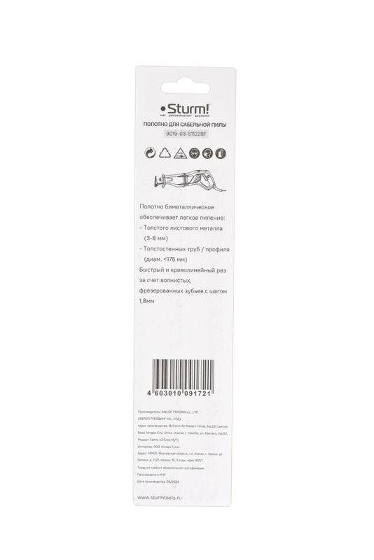 Полотно для сабельной пилы МЕТАЛЛ 2шт 225/1,8мм (толс лист/труб/проф) Sturm, 9019-03-S1122BF