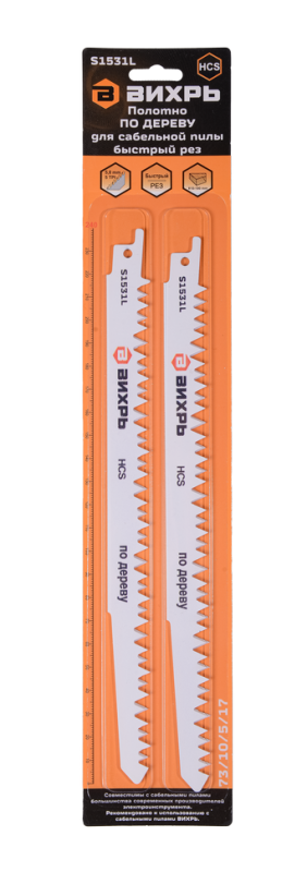 Полотно для сабельной пилы S1531L по дереву 240мм (2 шт) Вихрь, 73/10/5/17