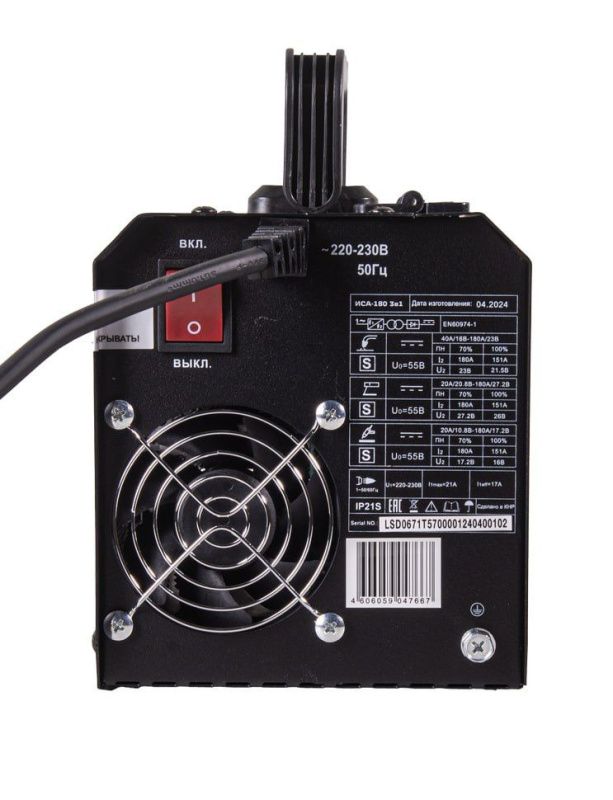 | Диапазон регулировки сварочного тока ММА | 20 — 180 |