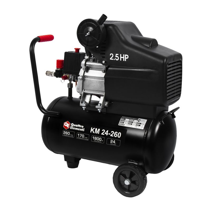 Поршневой масляный компрессор Quattro Elementi KM 24-260 - надежное и производительное оборудование, которое подойдет как для профессионального использования, так и для любителей. Благодаря своим характеристикам и функциональности, этот компрессор является незаменимым помощником в выполнении различных задач, связанных с сжатием воздуха.