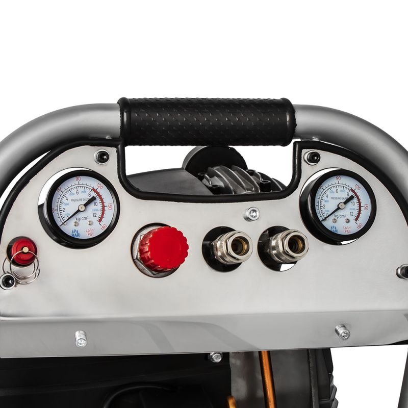 Компрессор оснащен удобной ручкой и колесами, что обеспечивает его легкость в перемещении. Вы сможете свободно перемещаться по рабочей зоне и использовать компрессор там, где вам удобно. Компрессор имеет компактные размеры, что позволяет хранить его даже в небольших помещениях.