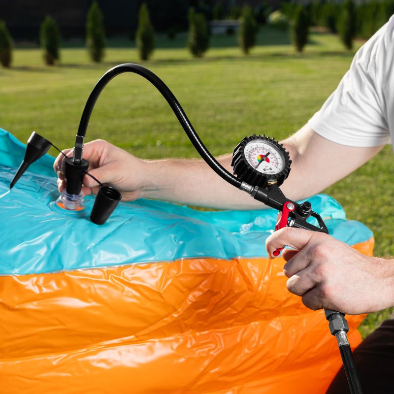 Модель оснащена регулятором давления, который позволяет легко настраивать необходимое давление воздуха в соответствии с требованиями вашей работы. Это позволяет использовать компрессор для различных задач, включая накачивание шин, покраску, пескоструйную обработку и другие виды работ.