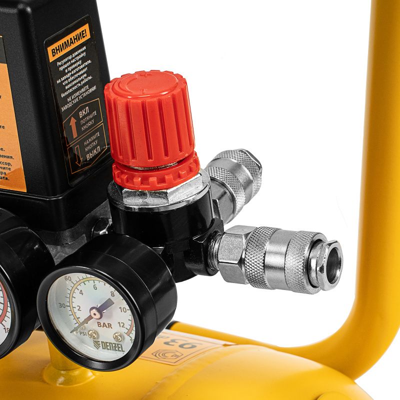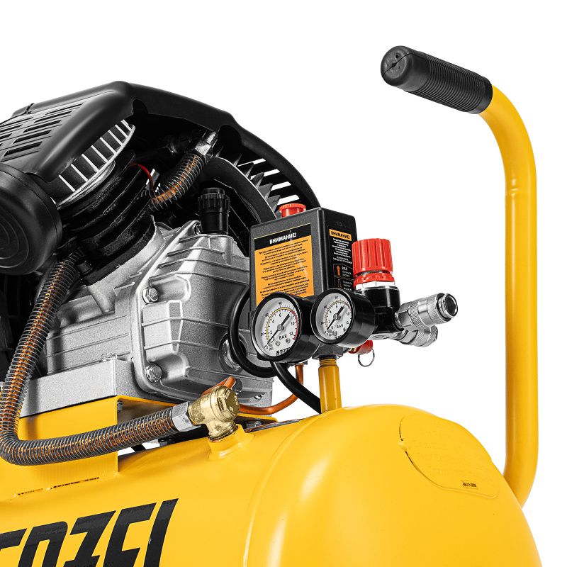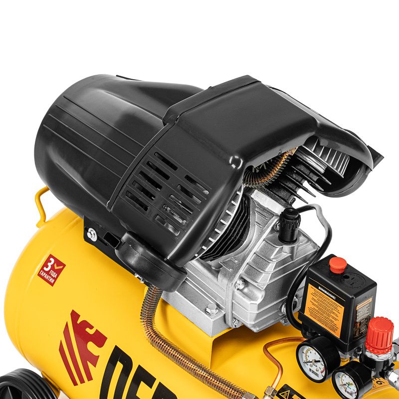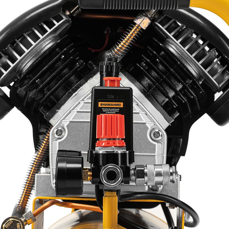 | Дополнительные характеристики | колеса и амортизирующие опоры - для снижения вибрации_мощный мотор и двухцилиндровая конструкция - высокая производительность_регулятор давления и 2 манометра для контроля давления и расхода воздуха_ресивер 50 литров - работа с пневмоинструментом со средним уровнем потребления воздуха_защита от перегрева обмоток мотора_защита от перегрузки |