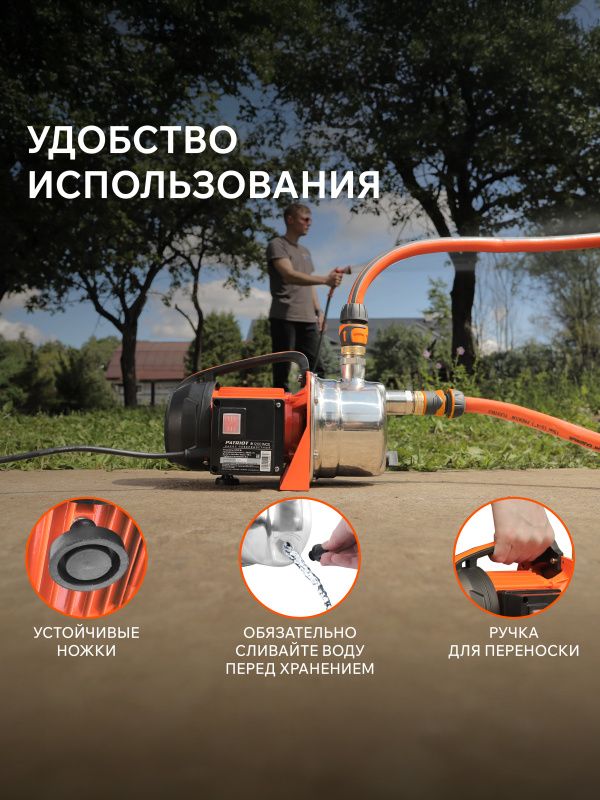 Насос Patriot R 1200 INOX оснащен удобной ручкой для переноски, что делает его мобильным и легко перемещаемым. Вы сможете использовать его в разных местах, не тратя время на установку и демонтаж.