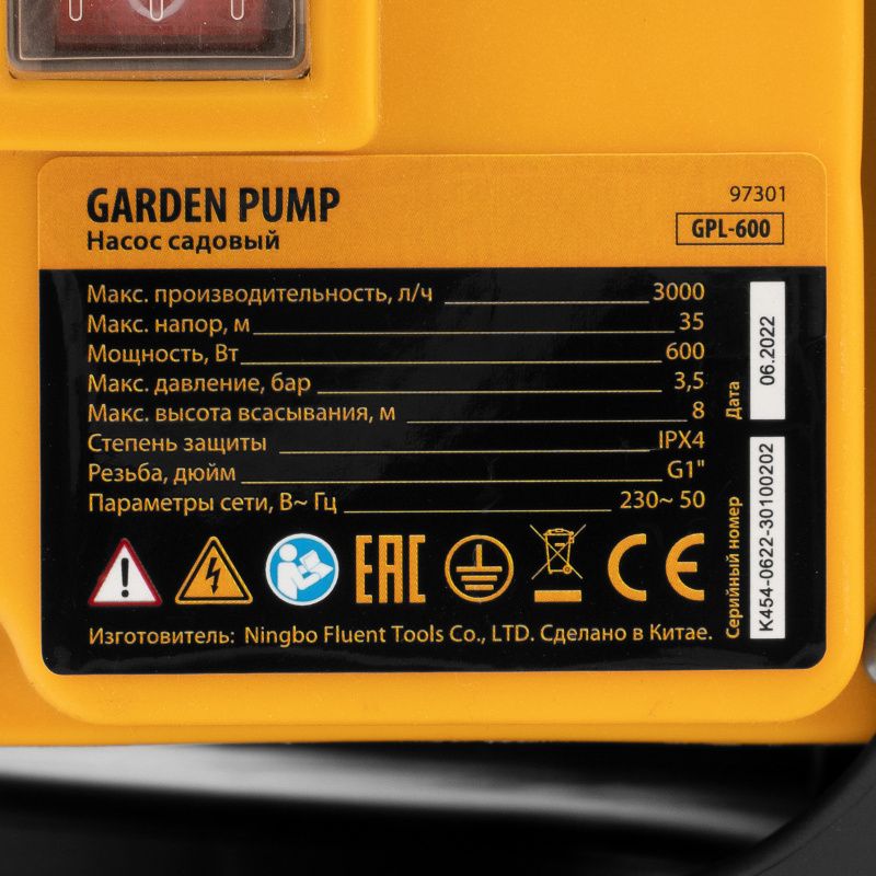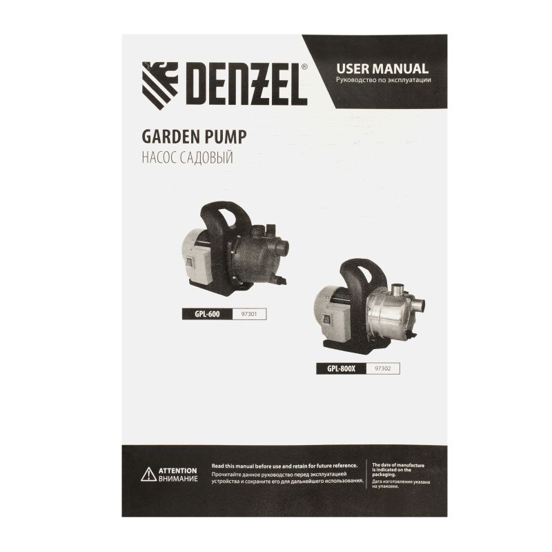Садовый поверхностный насос Denzel GPL600, 97301